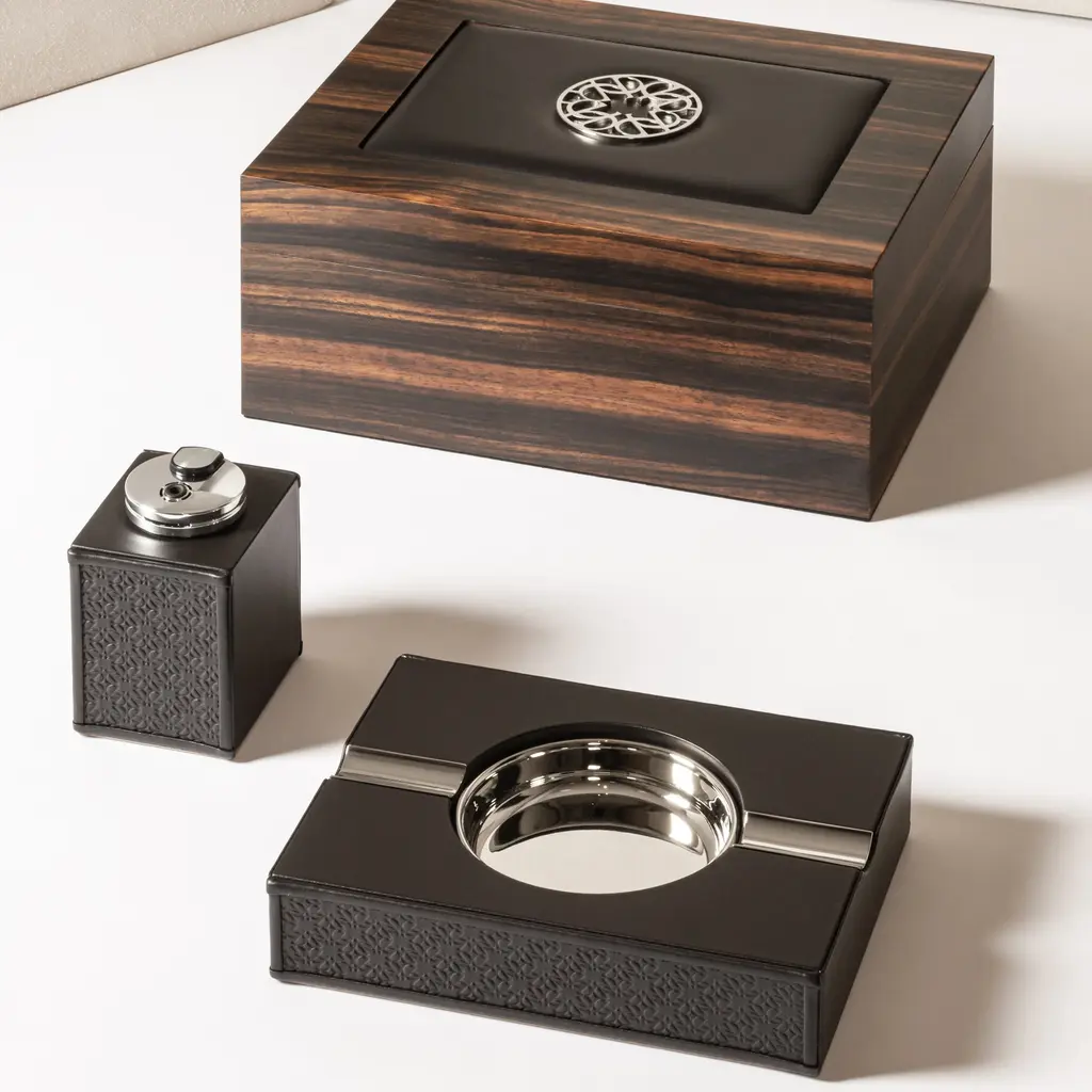 A true expression of haute couture for the home, the Giobagnara x Elie Saab Monogram Ashtray is an exquisitely crafted statement piece. Expertly handcrafted in Italy, this piece features inserts of padded leather, embossed with the iconic ELIE SAAB Monogram pattern. These tactile panels are contrasted with brilliant, polished palladium details. For perfect functionality, a removable palladium plate allows for effortless cleaning, transforming a simple accessory into a symbol of sophisticated living. Highlights: