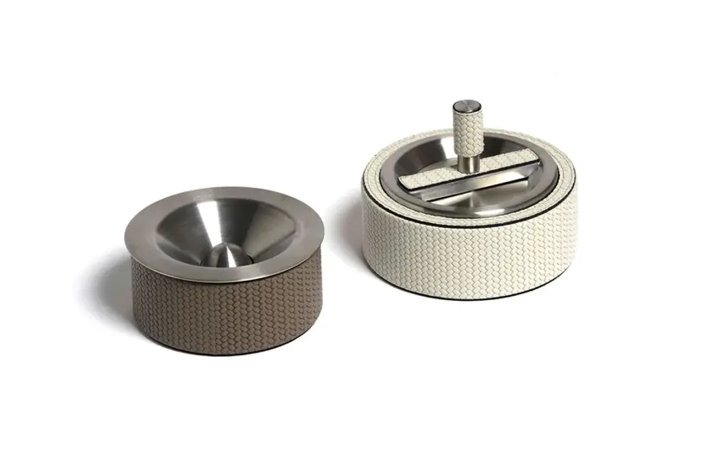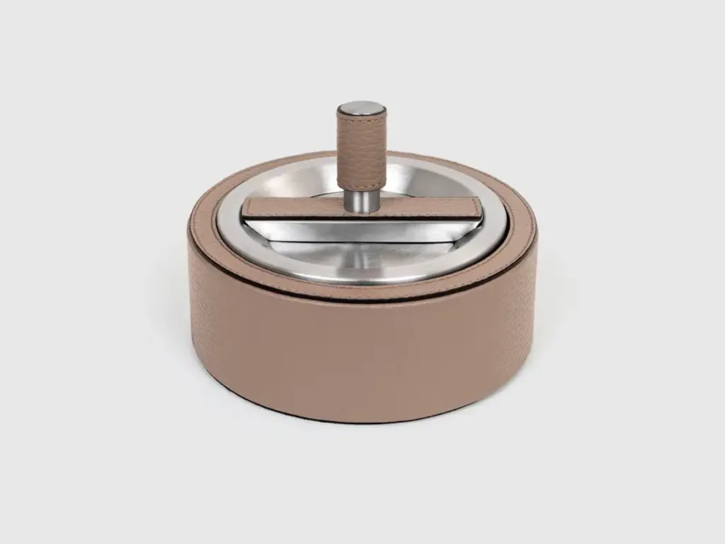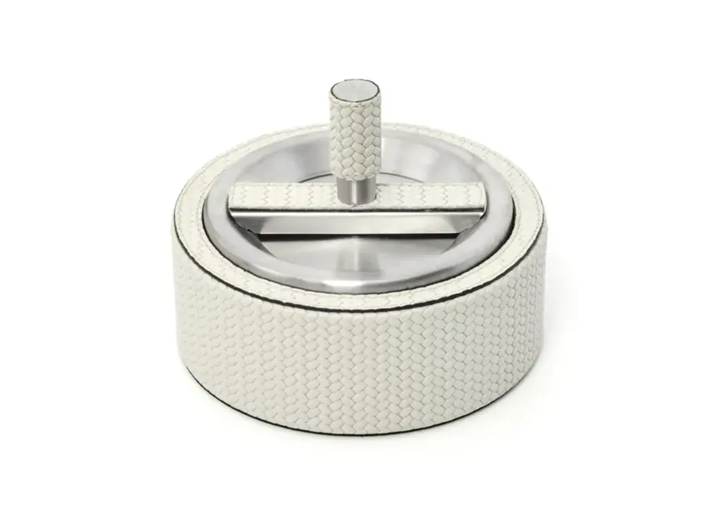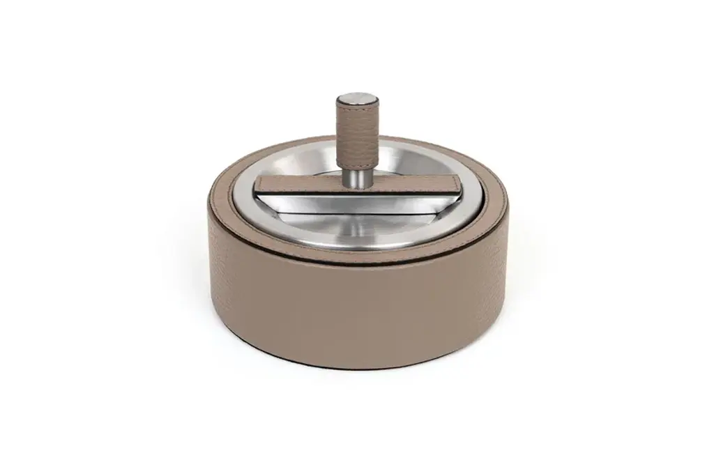 Giro is a spinning ashtray. The round stainless steel silhouette of Giro ashtray covered in fine leather adds a highly modern and elegant feel. A must-have for yachts and private jets. Do not hesitate to contact our Concierge to discover additional color options.