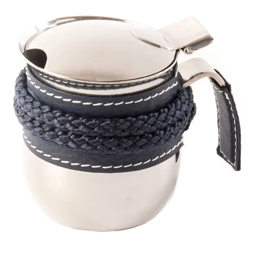 A captivating design, this ashtray exemplifies understated sophistication with its simple lines that will stand out in a modern decor. Handcrafted of steel, it is partly upholstered with gray-colored faux leather adorned with nautical rope. It features a concave top and it is wind-resistant. Available in a wide range of colors, please consult the Artemest catalog or contact the Concierge for further details and options.
