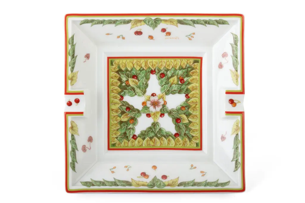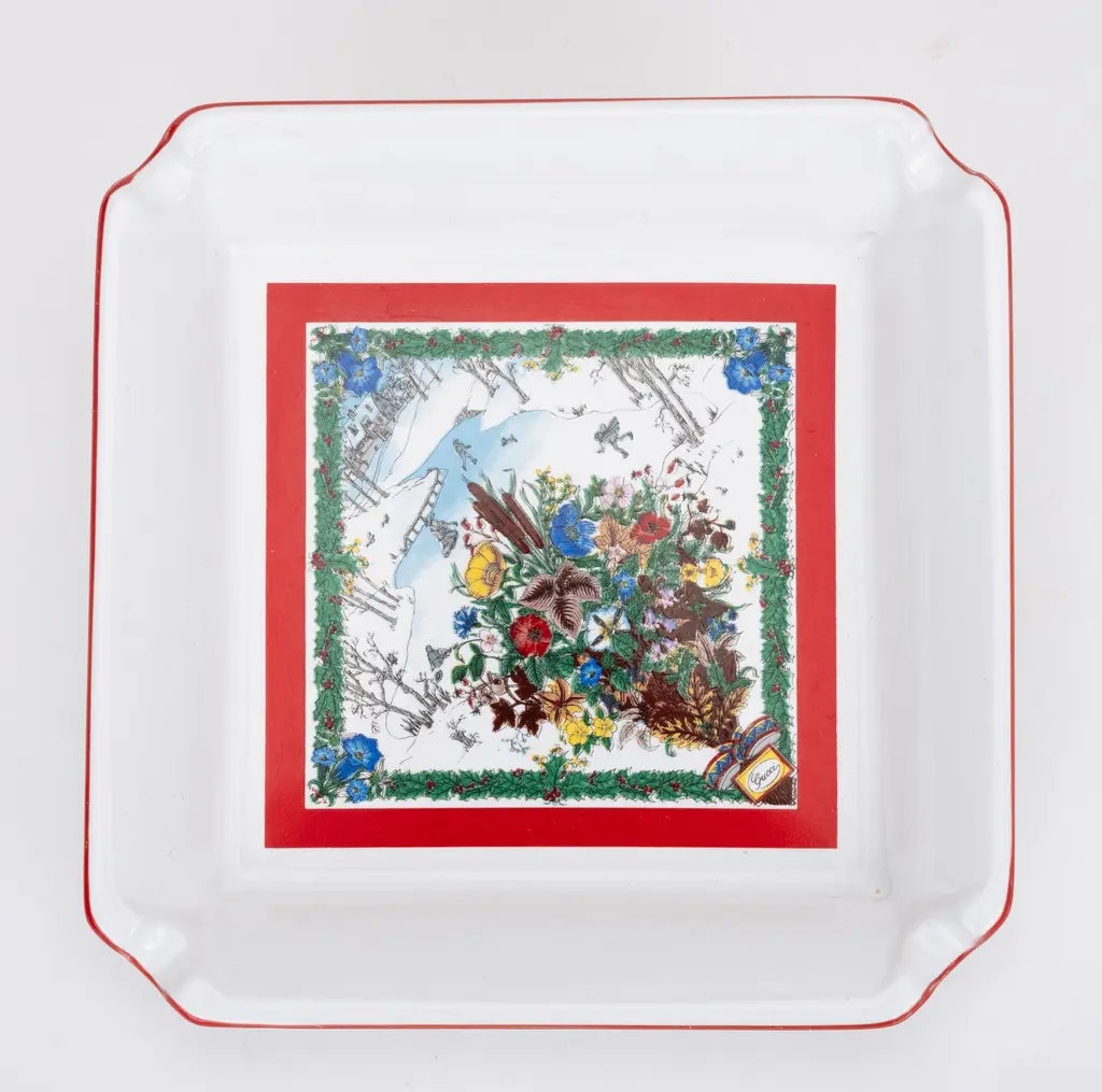 Gucci vintage Porcelain ashtray in white and red with flower bouquet design. Excellent condition.