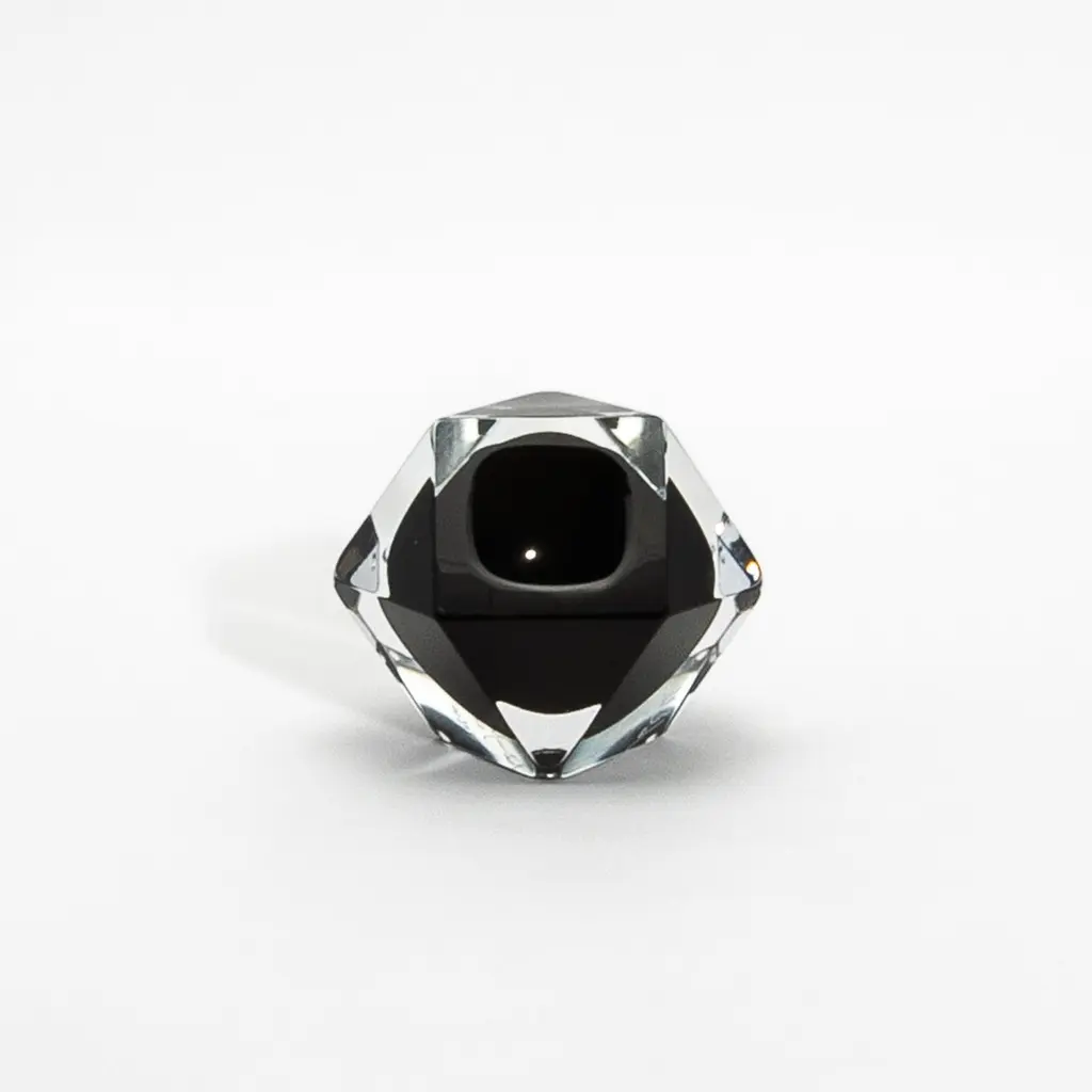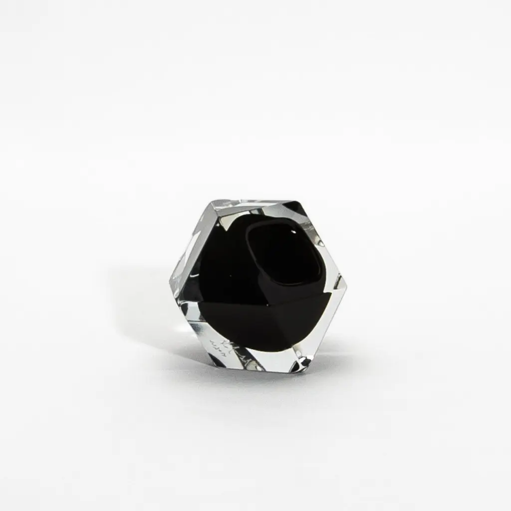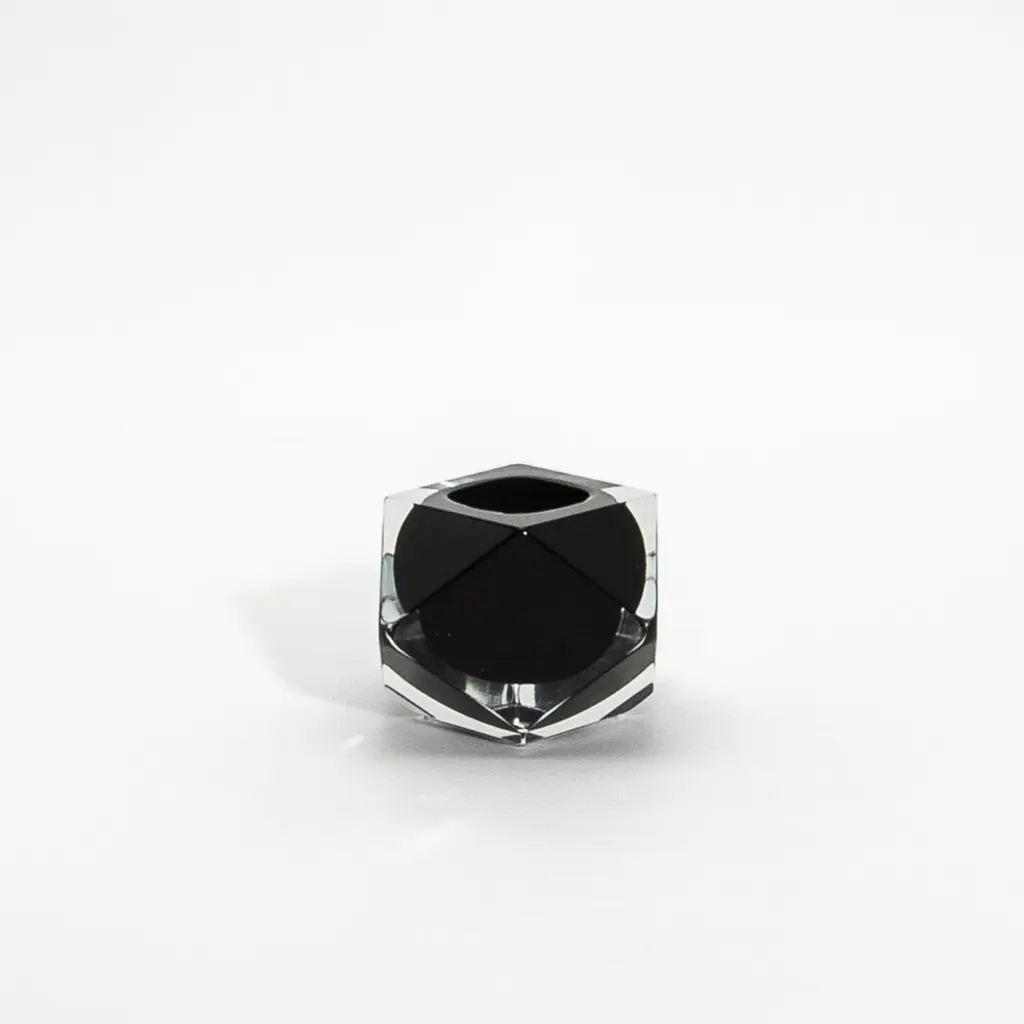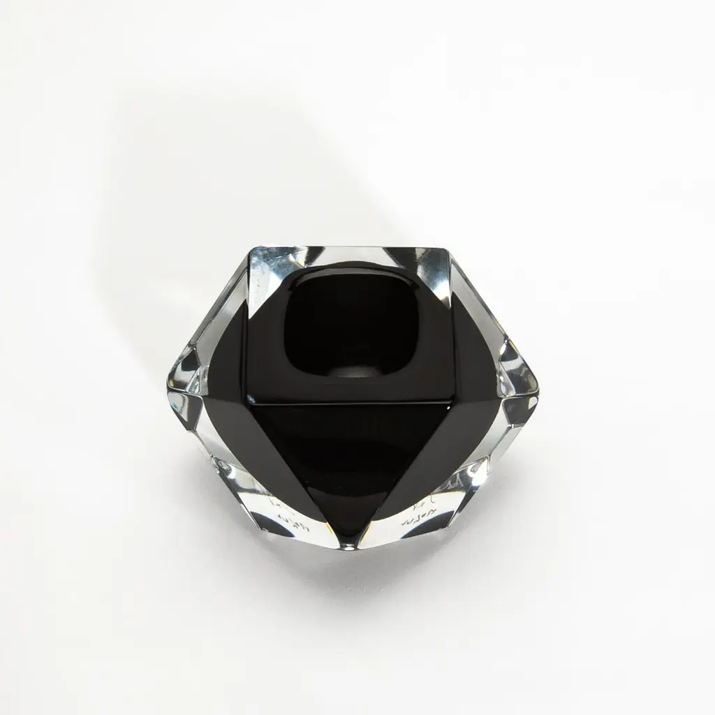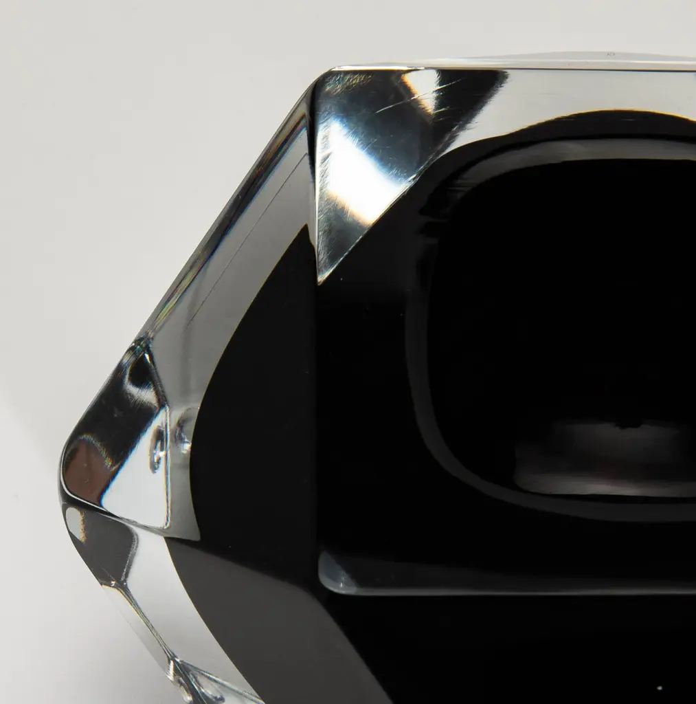 This exquisite hand-blown Murano ashtray is a true masterpiece of Venetian glass artistry, combining elegance and functionality in one luxurious design. Crafted from the finest Murano glass, its striking clear and onyx black hues create a mesmerizing contrast that captures light beautifully, transforming it into a dynamic interplay of shadows and reflections. The angular yet fluid form embodies a perfect blend of modern minimalism and timeless sophistication, making it not only a practical piece but also a stunning decorative object. Whether adorning a coffee table or serving as a conversation-starting accent, this handcrafted ashtray showcases the unmatched craftsmanship and artistry synonymous with Murano's rich tradition. A statement of refinement, it adds a touch of contemporary luxury to any setting.