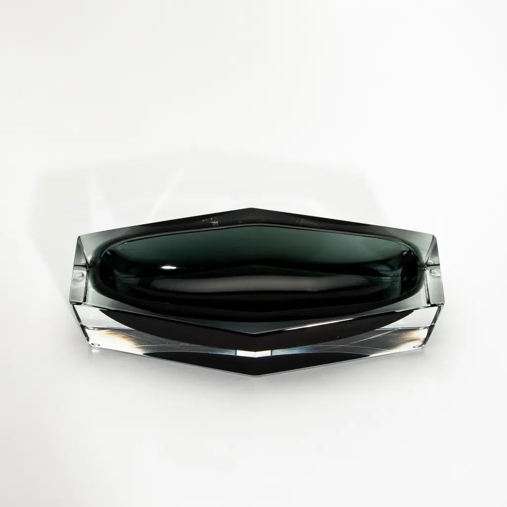 This hand-blown Murano ashtray in grey exudes refined sophistication with its minimalist design and striking craftsmanship. The delicate balance between its sleek, transparent exterior and the smoky grey core creates a captivating play of light and depth, making it more than just a functional piece—it's a statement of elegance. Crafted from the finest Murano glass using traditional techniques, this ashtray showcases the unparalleled skill of Italian glass artisans. Its smooth lines and geometric silhouette lend a contemporary edge, while its substantial weight ensures a luxurious feel. Whether as a practical accessory or a decorative object, this ashtray embodies timeless artistry and modern chic, making it a perfect addition to any discerning collector's curated space.