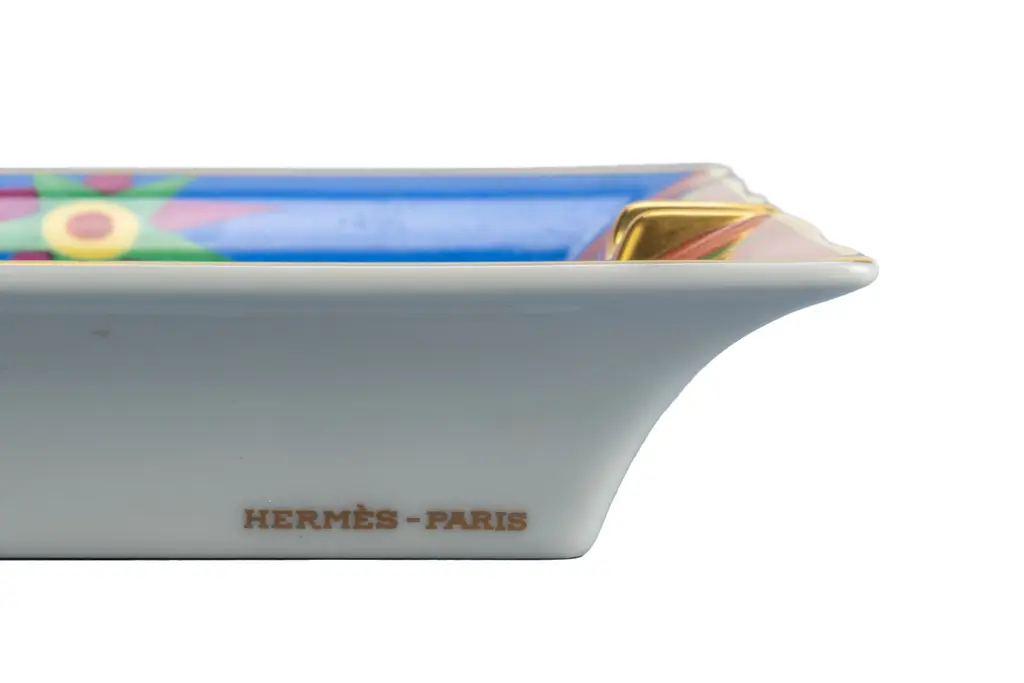 Hermes blue, green and brown porcelain ashtray with a jungle scene design