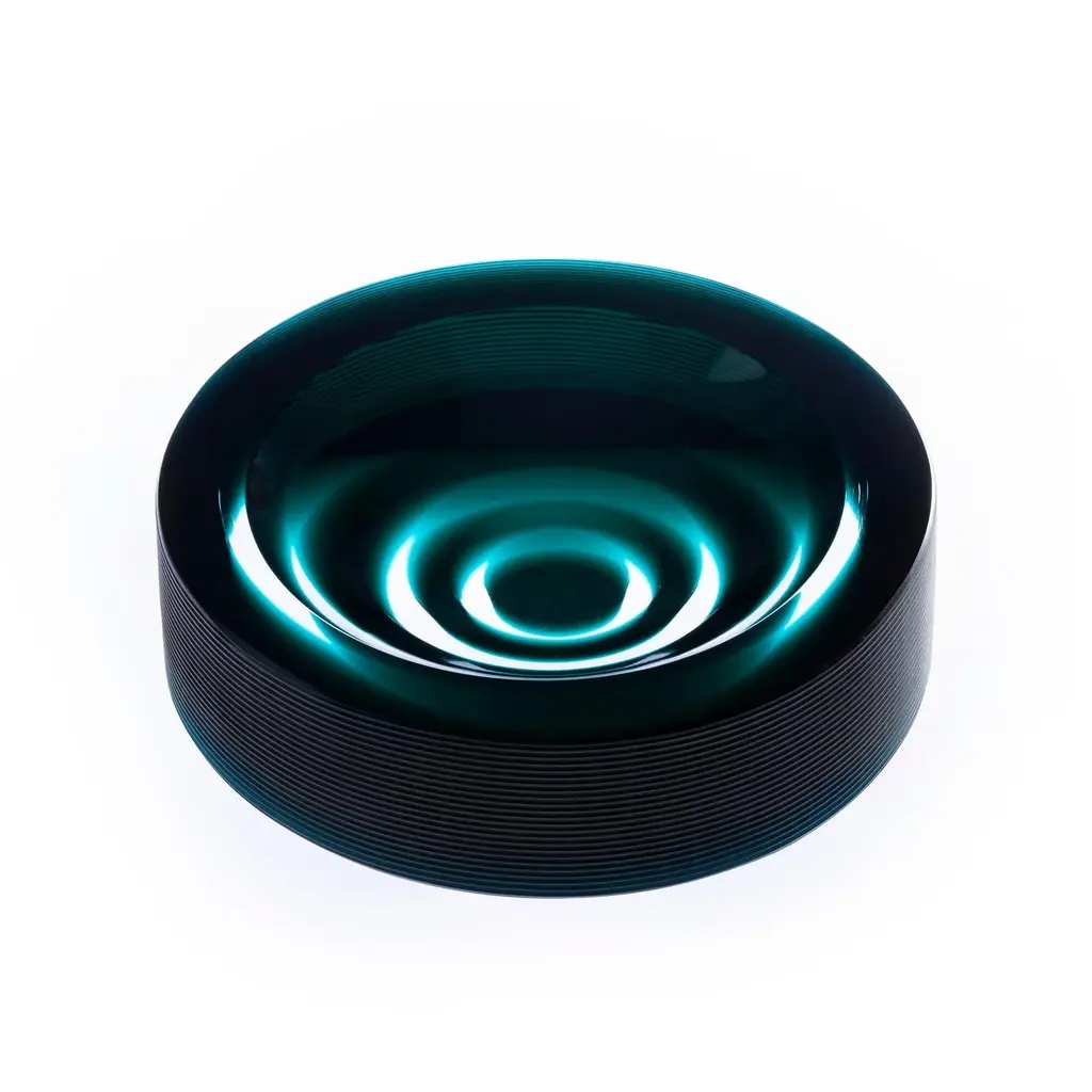 Set of 2 Incisioni Iridi Stripe Ashtrays by Purho Dimensions: D14x H3.5 cm Materials: Glass Other colours and dimensions are available. Purho is a new protagonist of made in Italy design, a work of synthesis, a research that has lasted for years, an Italian soul and an international character, thematic collections of Murano glass objects , designed by great designers, made by great glass masters.