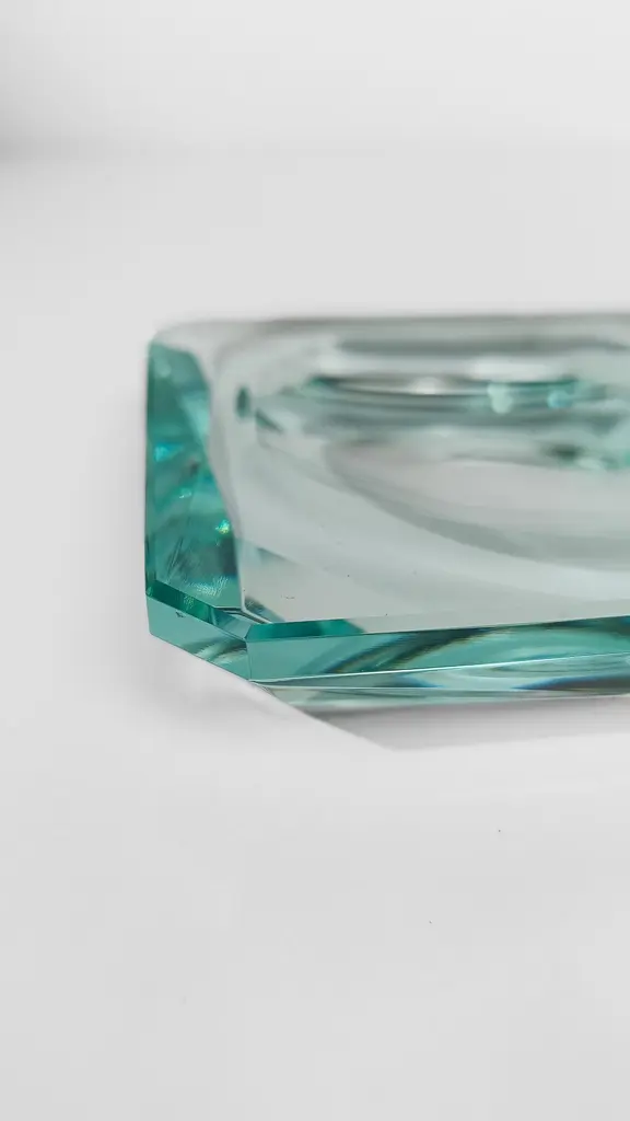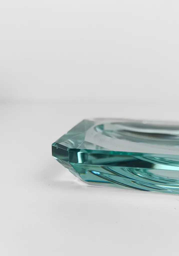 Italian Vintage Ashtray In Beveled Nile Green Glass Attributed To Fontana Arte