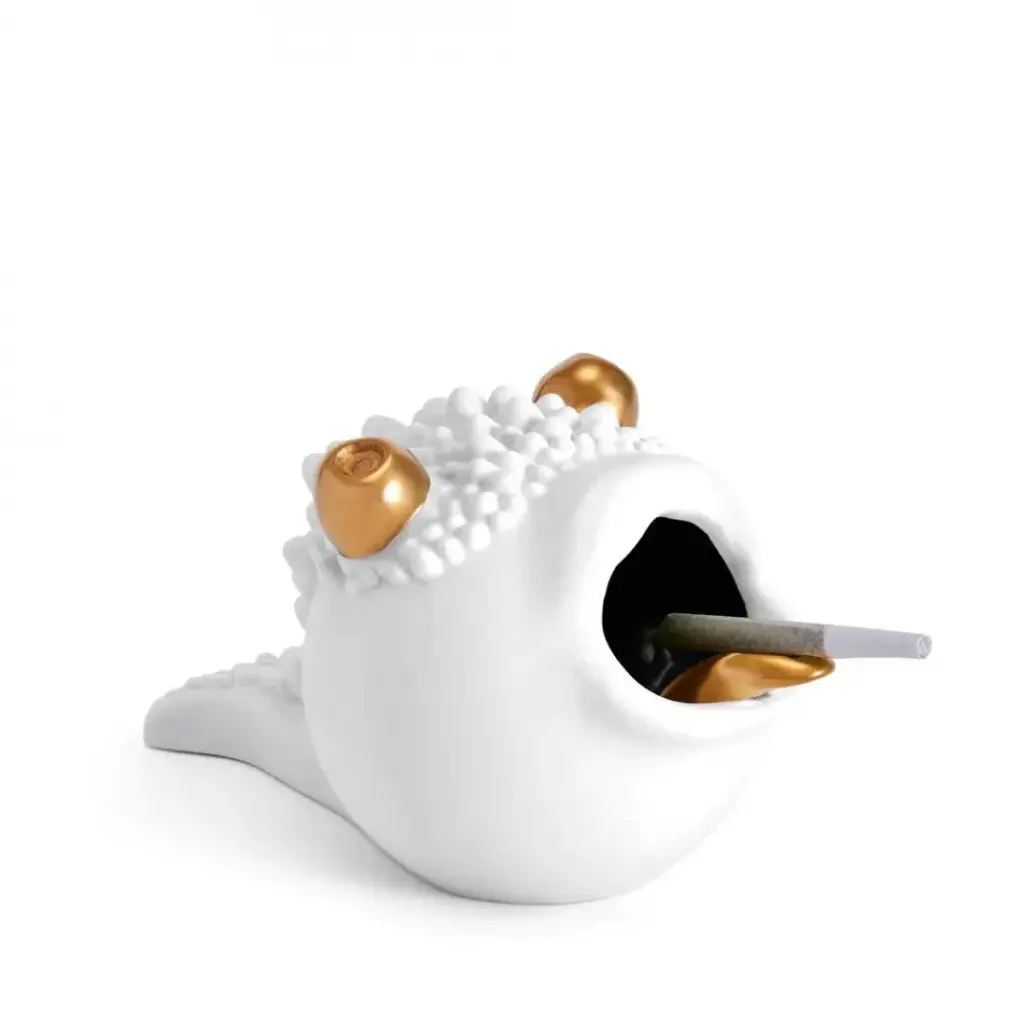 L'objet + Haas Haashtray Ashtray Petit White + Gold 7 X 3.75 X 3.75" - 18 X 10 X 10cm