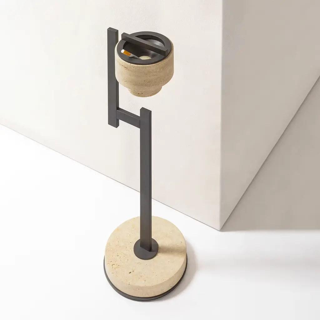 The Rimini standing ashtray features a structure made of metal and marble combined, both available in different finishes. With its clean lines and materials that create eye-pleasing contrasts, it is both a perfectly functional creation and a beautiful decoration. Different Rimini Standing ashtray finishes are available upon request.