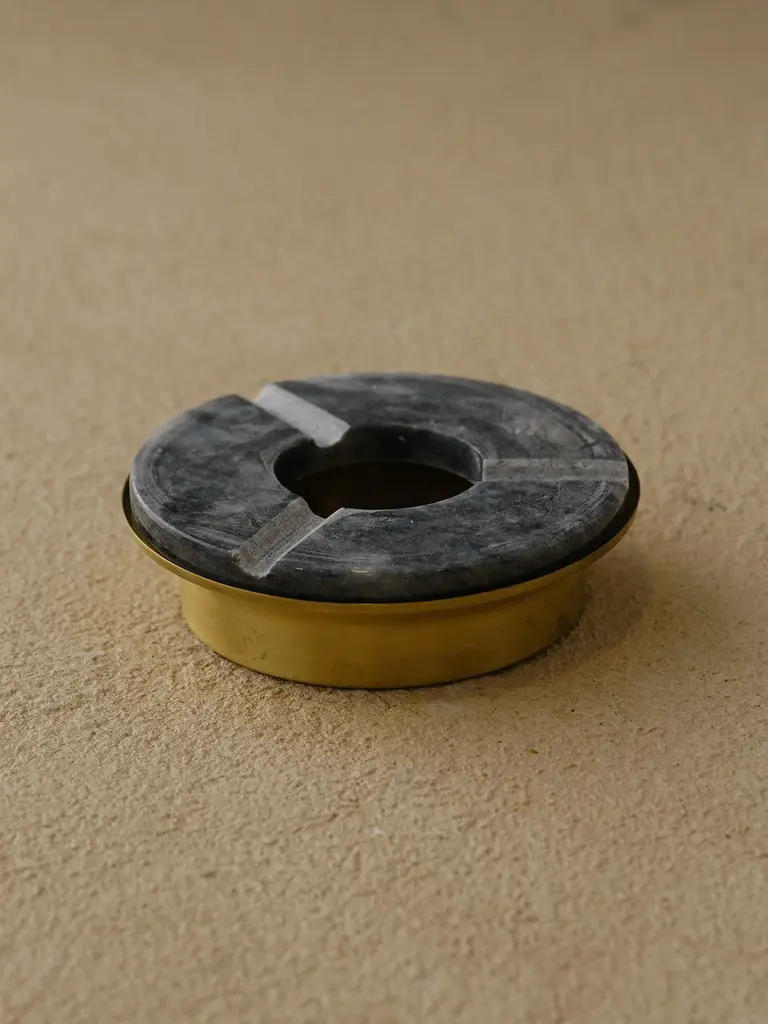 A refined balance of modern elegance and raw texture, the Round Marble & Brass Ashtray in Anthracite is a striking addition to any curated space. The deep, smoky tones of the anthracite marble top offer a dramatic contrast to the warm, brushed brass base, creating a piece that is both bold and sophisticated. With subtle veining and natural variation, each ashtray is one of a kind—perfect for design lovers who appreciate timeless craftsmanship with a contemporary edge. Ideal for indoor lounges, terraces, or as a statement tabletop accent.