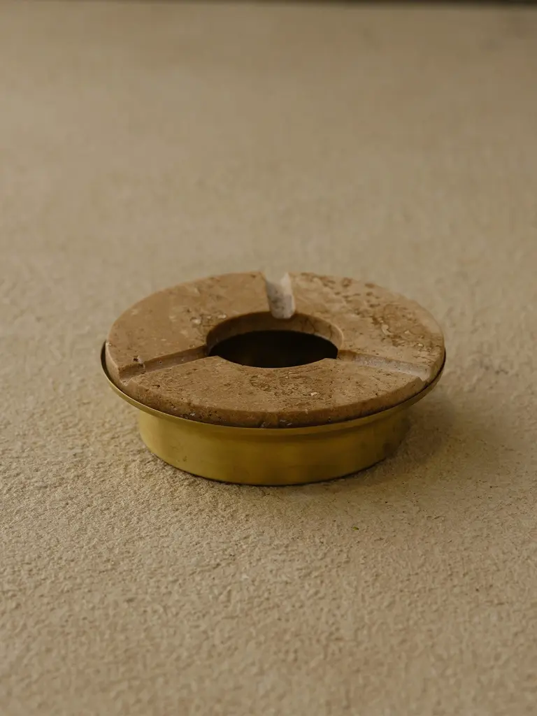 Round Travertine & Brass Ashtray – Beige