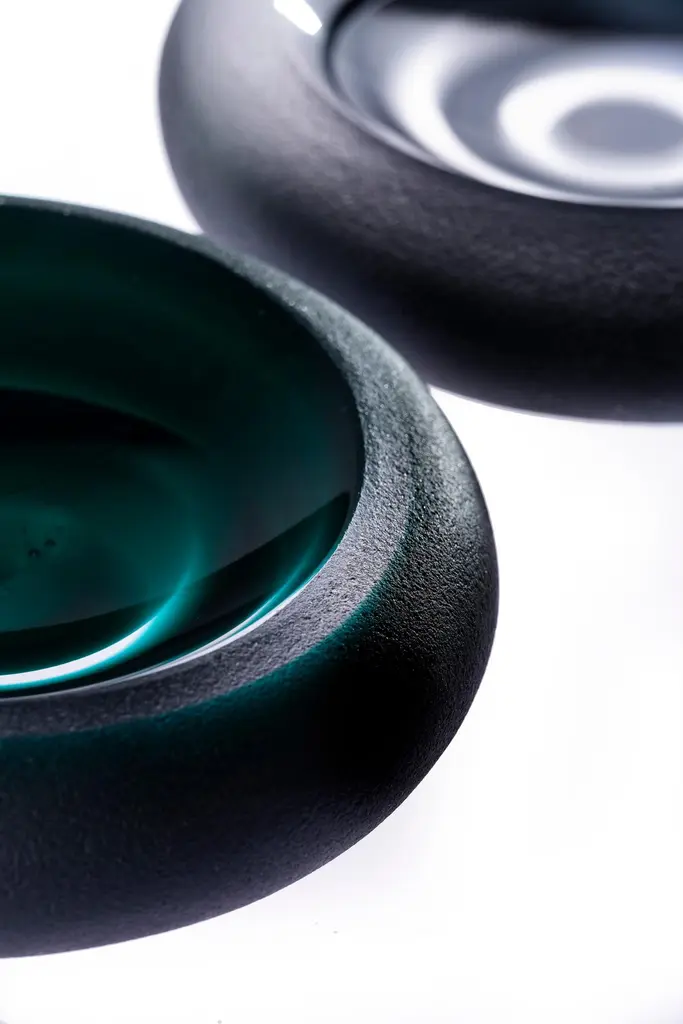 Set of 2 Incisioni Iridi Sand Ashtrays by PurhoDimensions: D14x H3.5 cm eachMaterials: GlassOther colours and dimensions are available.Purho is a new protagonist of made in Italy design , a work of synthesis, a research that has lasted for years, an Italian soul and an international character, thematic collections of Murano glass objects , designed by great designers, made by great glass masters.Purho expresses the identity and the original vocation of design: to create “fairytale objects ”, vases, lights, glasses and other glasses capable of living forever in space and time in a correct, magical and ultra-functional way.Purho was born from an untouchable, divine concept-word, purity, contaminated by material factors, earth, air, fire, water, enriched by the human factor, that h which indicates humanitas , i.e. transience, perfection of imperfection, uniqueness.Purho is the materialization of an aspiration , a tension towards imperfect perfection, that is, a radically, profoundly human drive.