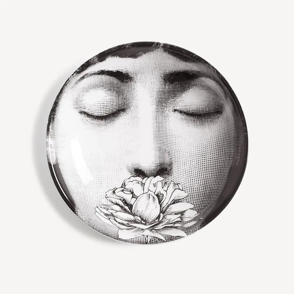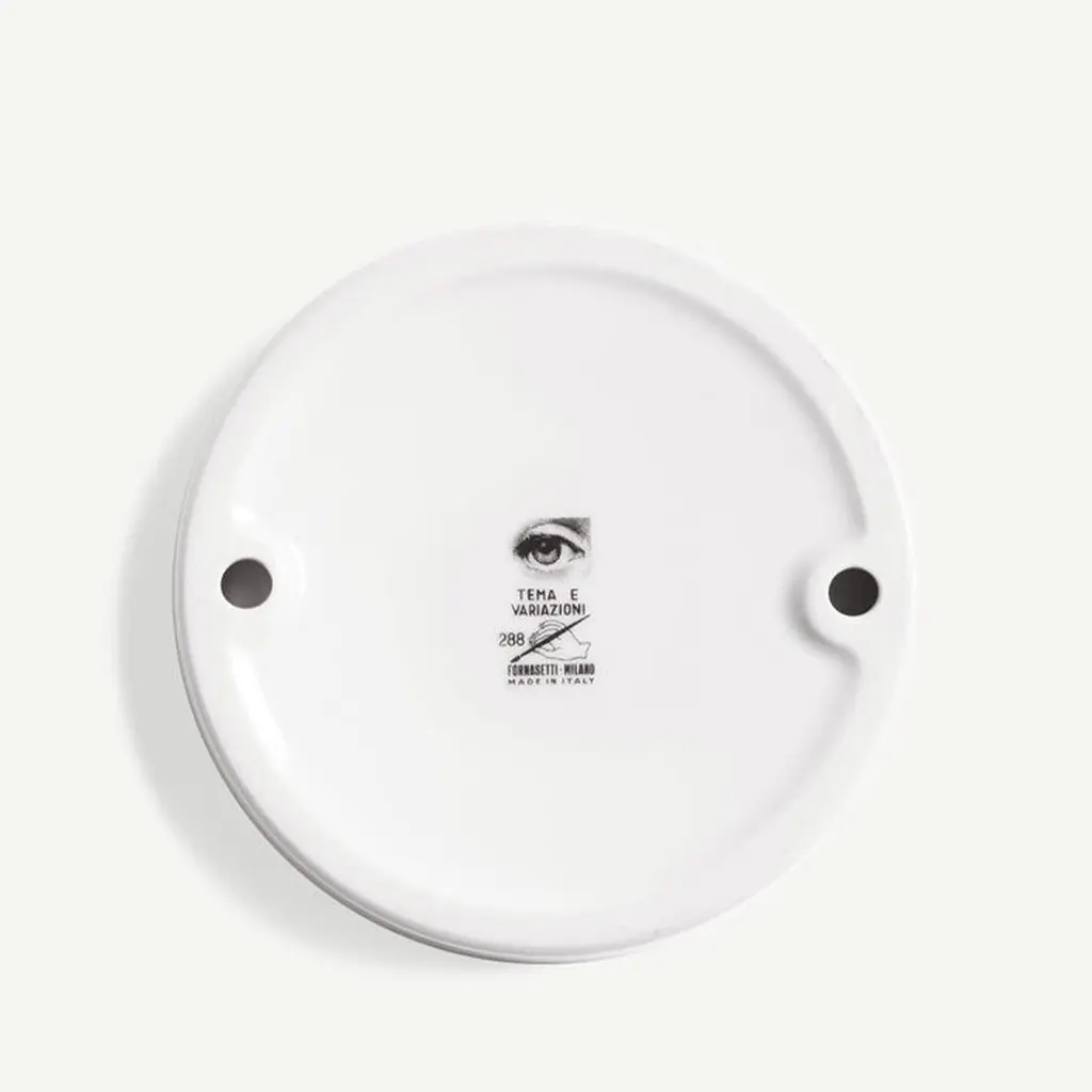 The face of opera singer Lina Cavalieri, reinterpreted by Piero Fornasetti, embellishes this hand-decorated porcelain ashtray, part of the iconic Tema e Variazioni series: an everyday object and thus becomes a true collector's item. Any minor discrepancies between similar creations are the result of craftsmanship and attest to the uniqueness of each product.