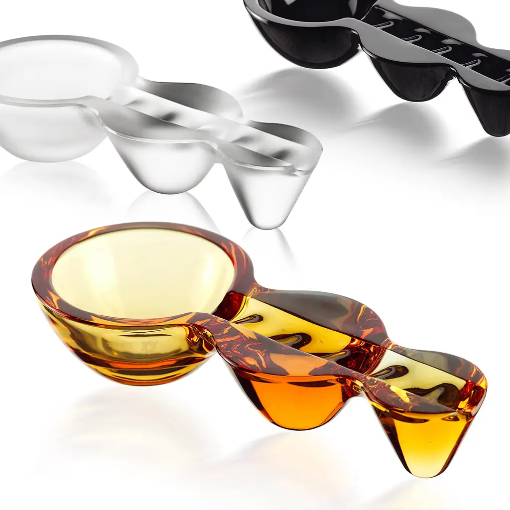 Ashtray for cigar, object of unique fascination. Result of an attentive studio for the combination of functionality and design. Its external shape allows an easy taking, hold the ashtray in the hand or moving where is needed to. Thanks to its waves groove welcome the cigar suspended and the waves toward the tobacco assure the ventilation limiting to condense under the cigar.