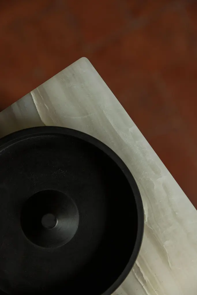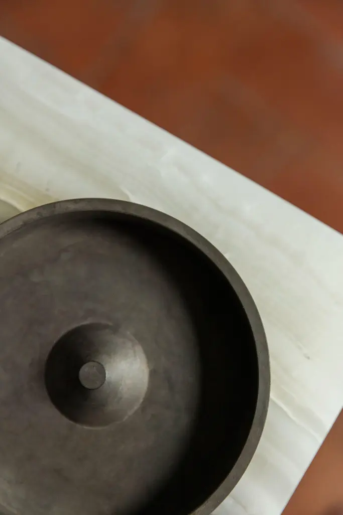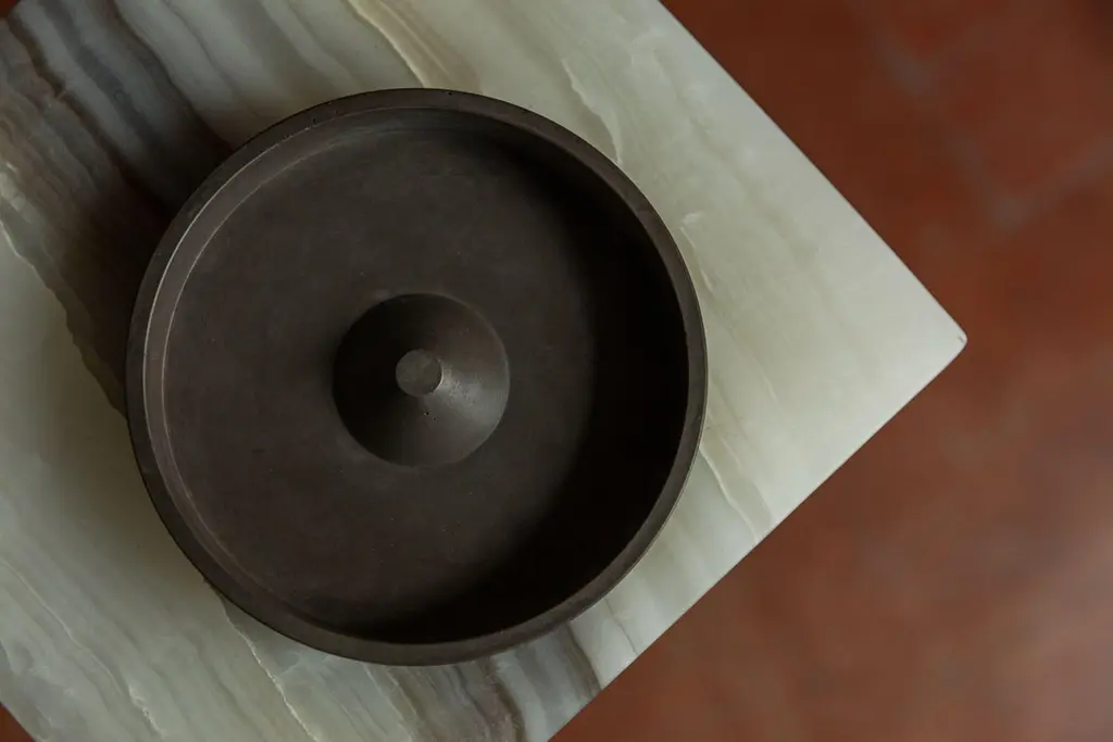 Unique bronze ashtray by Rick OwensDimensions: L 16 x W 16 x H 3 cmMaterials: BronzeWeight: 1.5 kgAvailable in black and nitrate finish.Rick Owens is a California-born fashion and furniture has developed a unique style that he describes as “luxe minimalism.”Though his designs are simple and spare, Owens thrives on theatricality, producing wildly original runway shows featuring gender-fluid models of all ages and shapes. Inspired by his longtime partner and muse, Michele Lamy, clothes and furniture alike feature dark grays, blacks and browns. Like his frontier forebears, Owens finds his strongest influences in nature, his furniture and housewares have simple, organic shapes, and a few items even feature his distinctly 21st century take on antlers.
