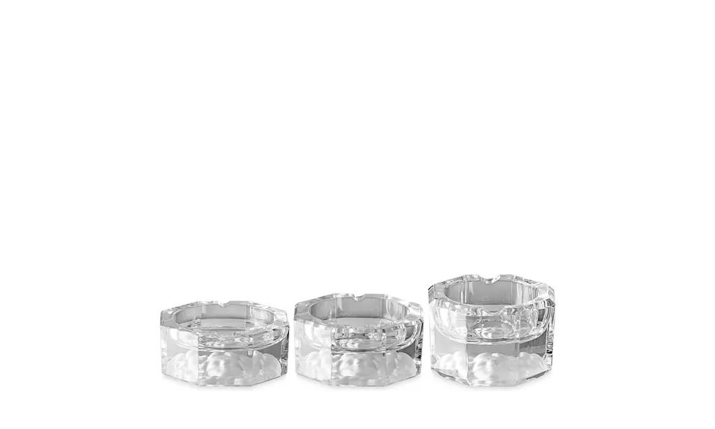 Produced using the finest crystal, Versace's Medusa Lumiere Ashtrays bring formal and elegant style to your home or office. Each is hand cut in beautiful detail and features the signature Medusa accent at its base.