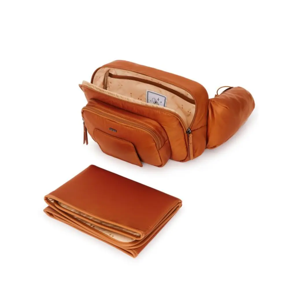 This stylish diaper changing sling from Caraa is a veritable parenting bag of tricks. It's lightweight yet roomy enough to hold an included tri-fold changing pad, plus spare diapers and your wallet. A clever front pouch serves as a wipes dispenser, and a dedicated front pocket keeps your phone close at hand. It's all encased in cloud-like, water-repellent black nylon. And the adjustable strap makes it easy to wear hands-free when you're on the go.