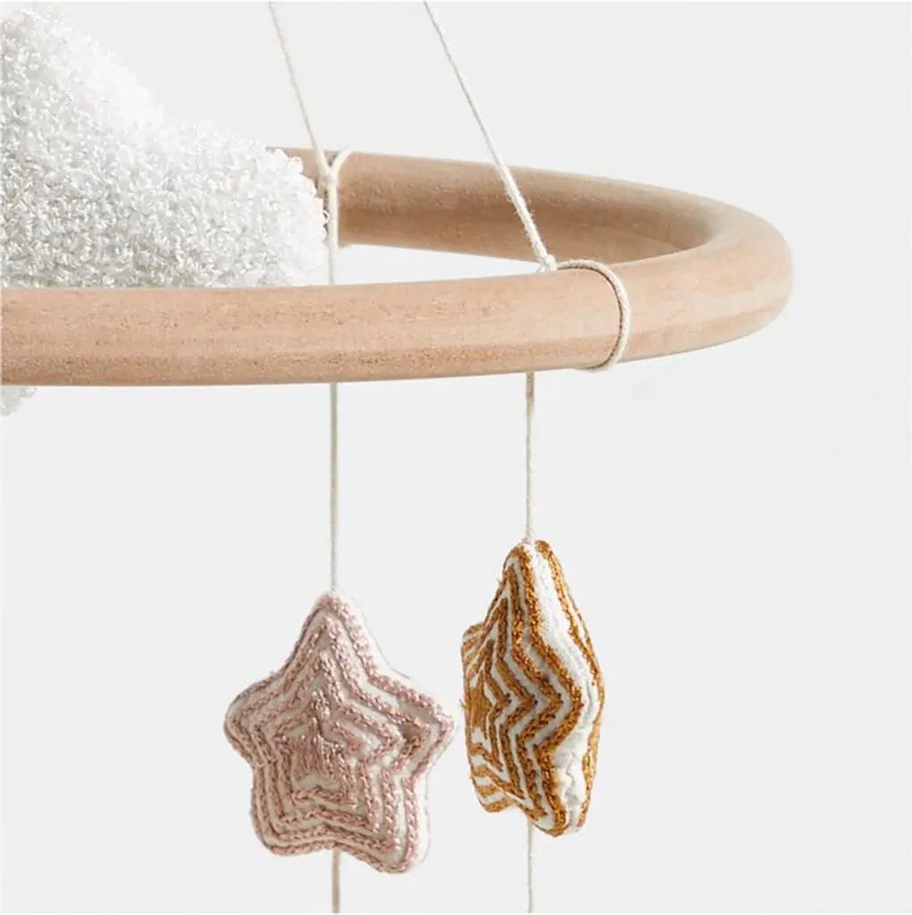 The forecast? All sunshine and rainbows. Our Weather Patterns Mobile brings a sense of calm to the nursery as the sun, moon, stars, rainbow, clouds and hot air balloon float through the air. Each organic cotton element is decorated with intricate embroidery, and the neutral hues coordinate with a wide variety of our crib bedding.