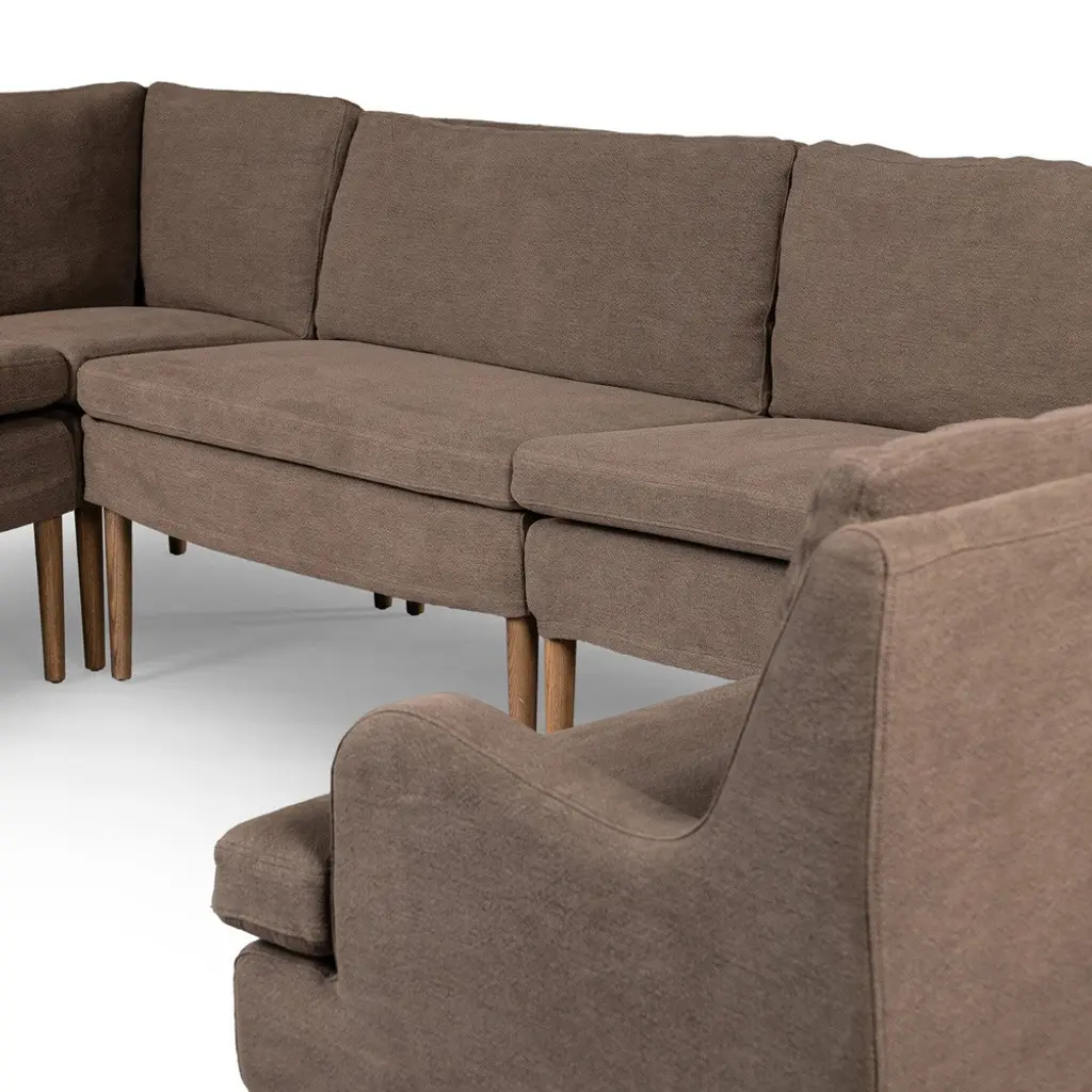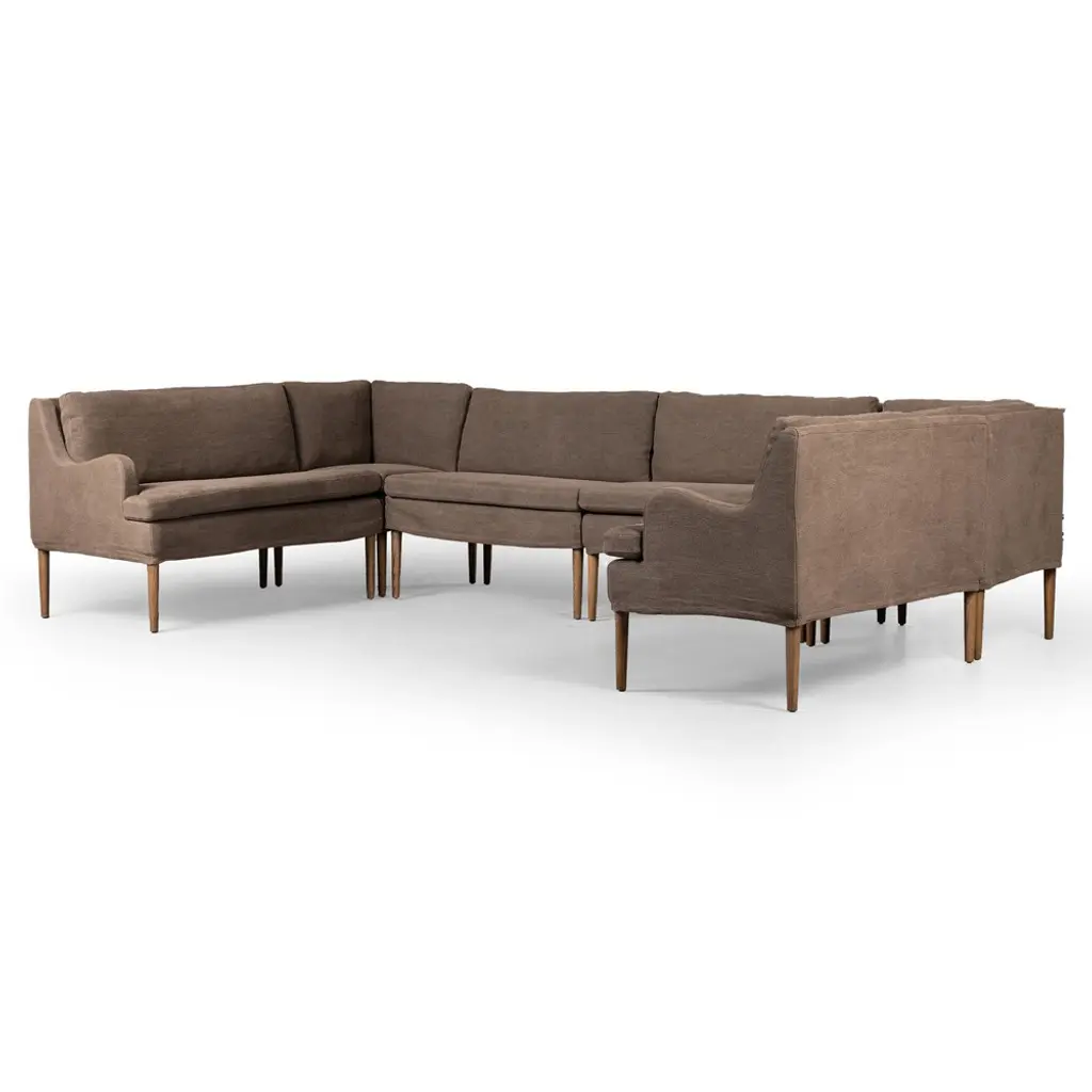 Aurelia Broadway Coffee Linen Dining U-Shape Banquette - 131"