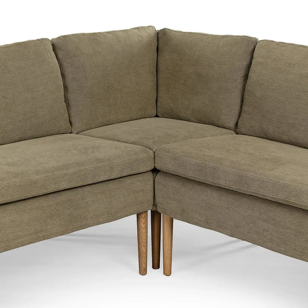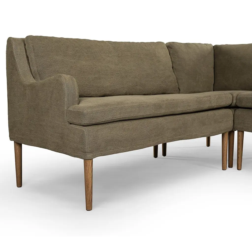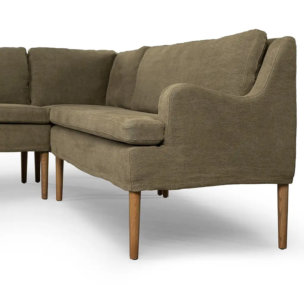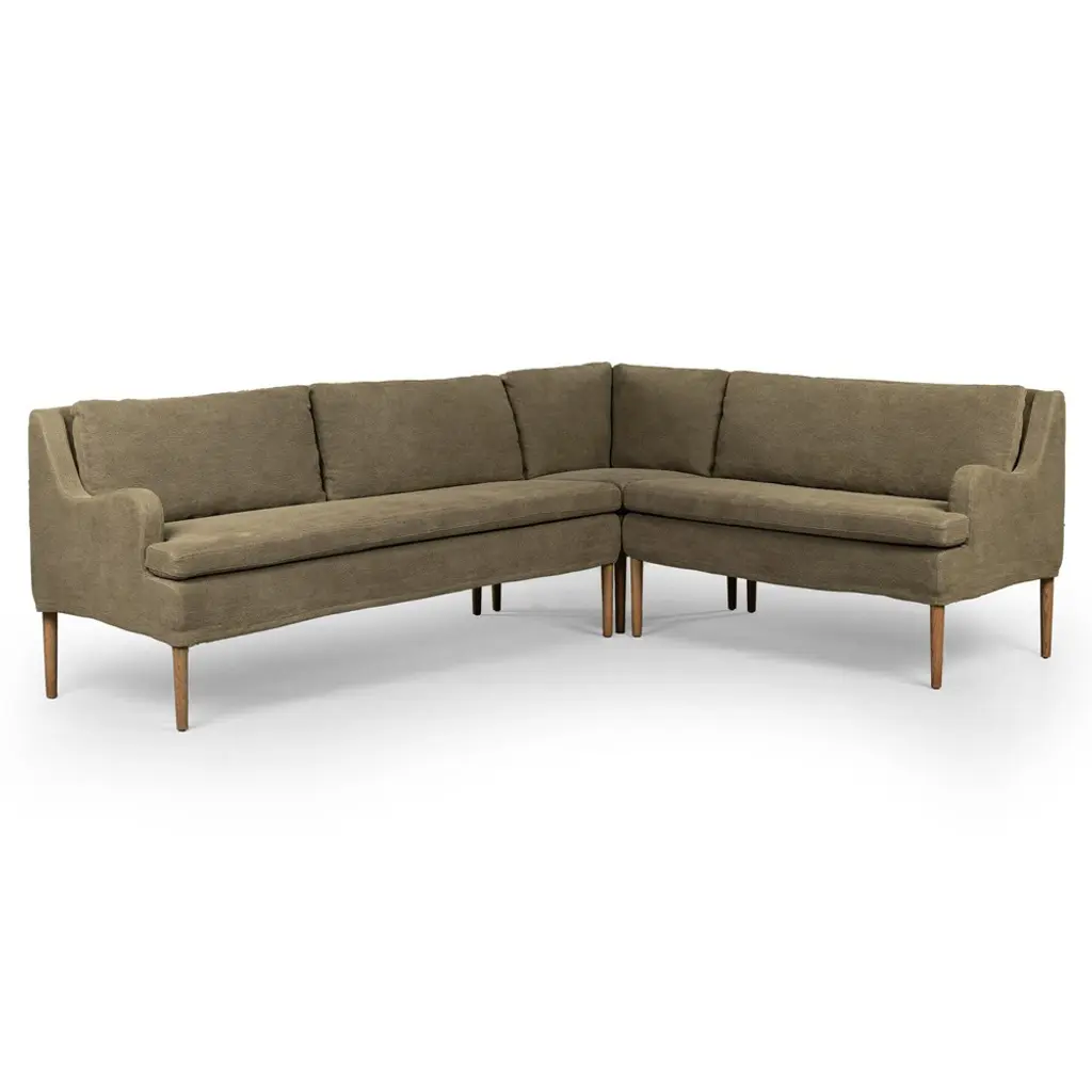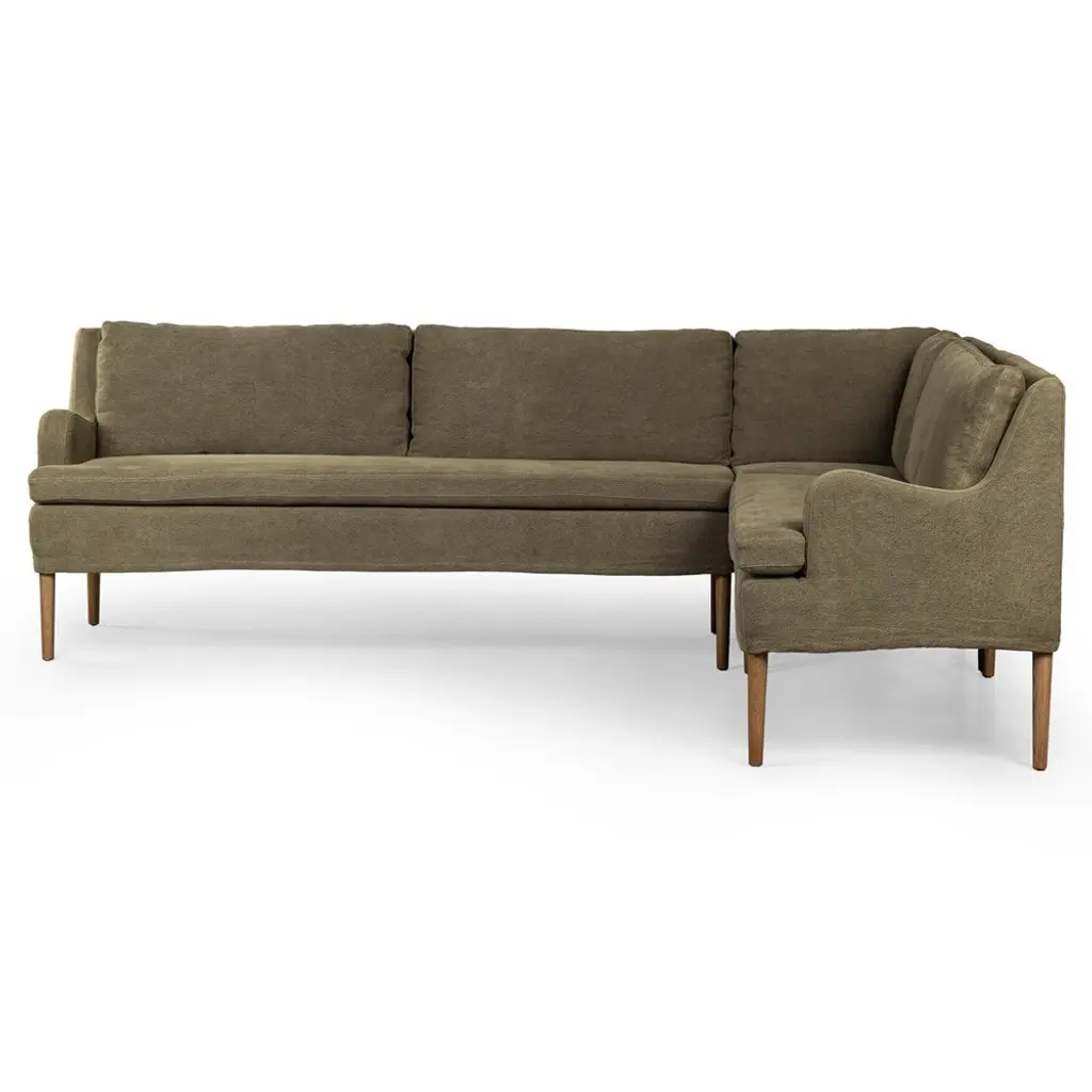 Aurelia Broadway Olive Linen Dining L-Shape Banquette - Right Arm Facing - 99"