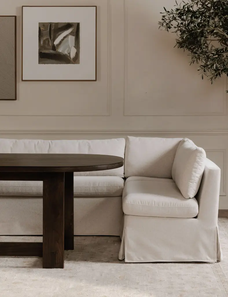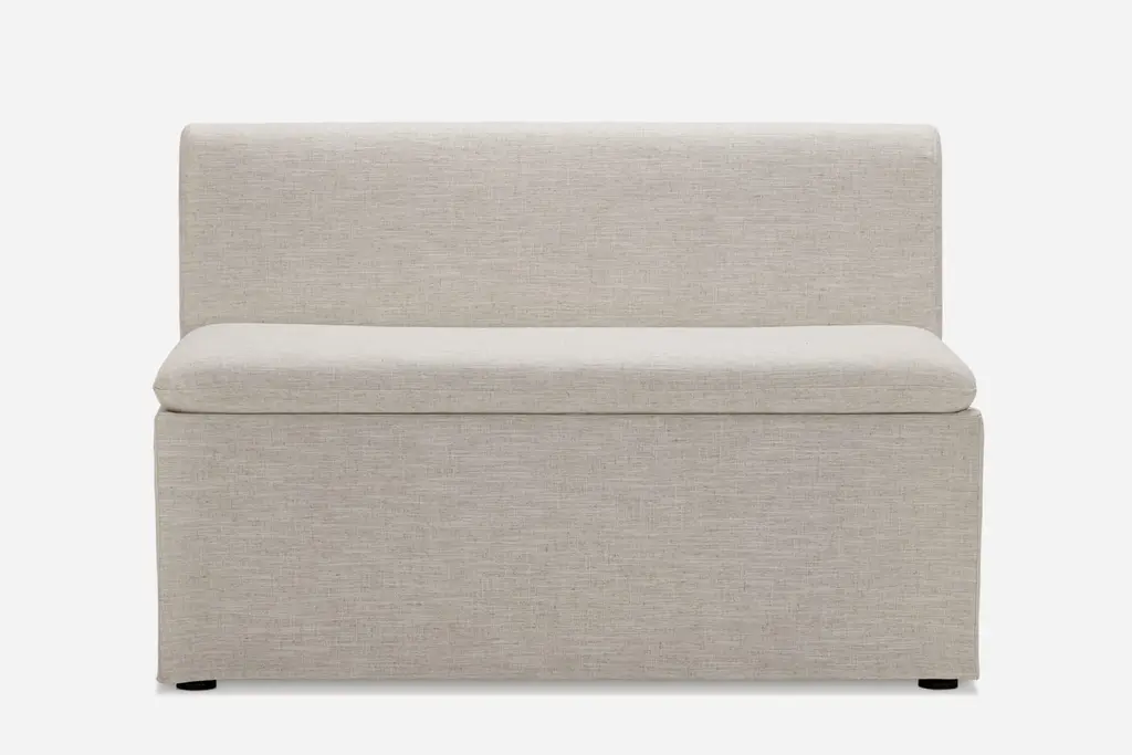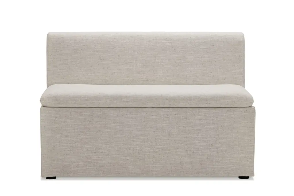 Callie features machine-washable slipcovers and storage under the seat. Tailored and modular, it offers a breezy approach to dining.