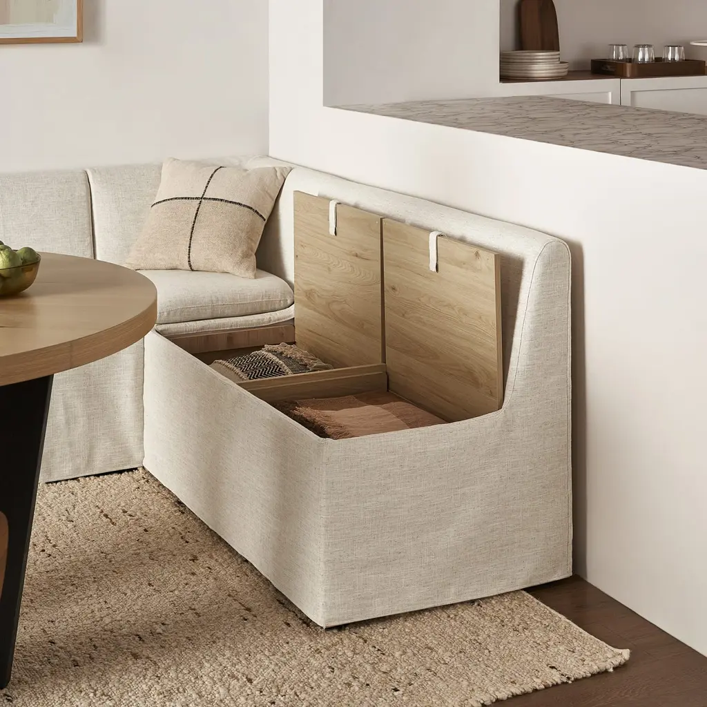 Callie Slipcovered L-shape Storage Banquette