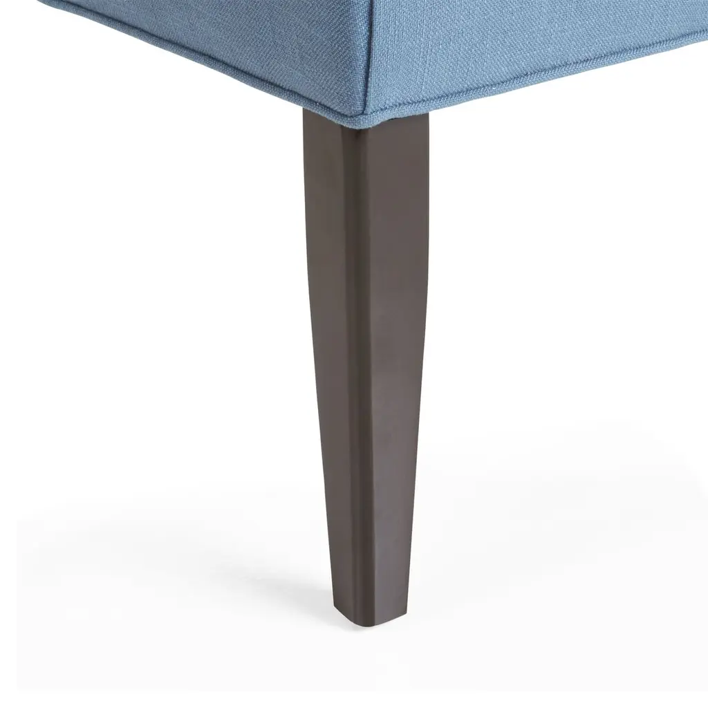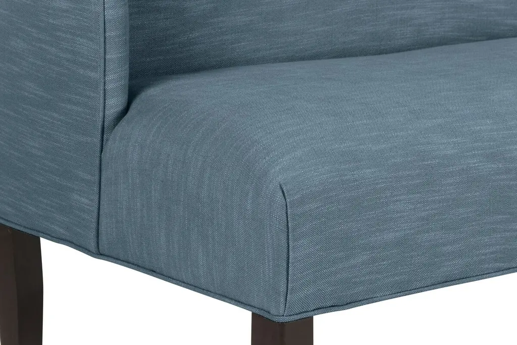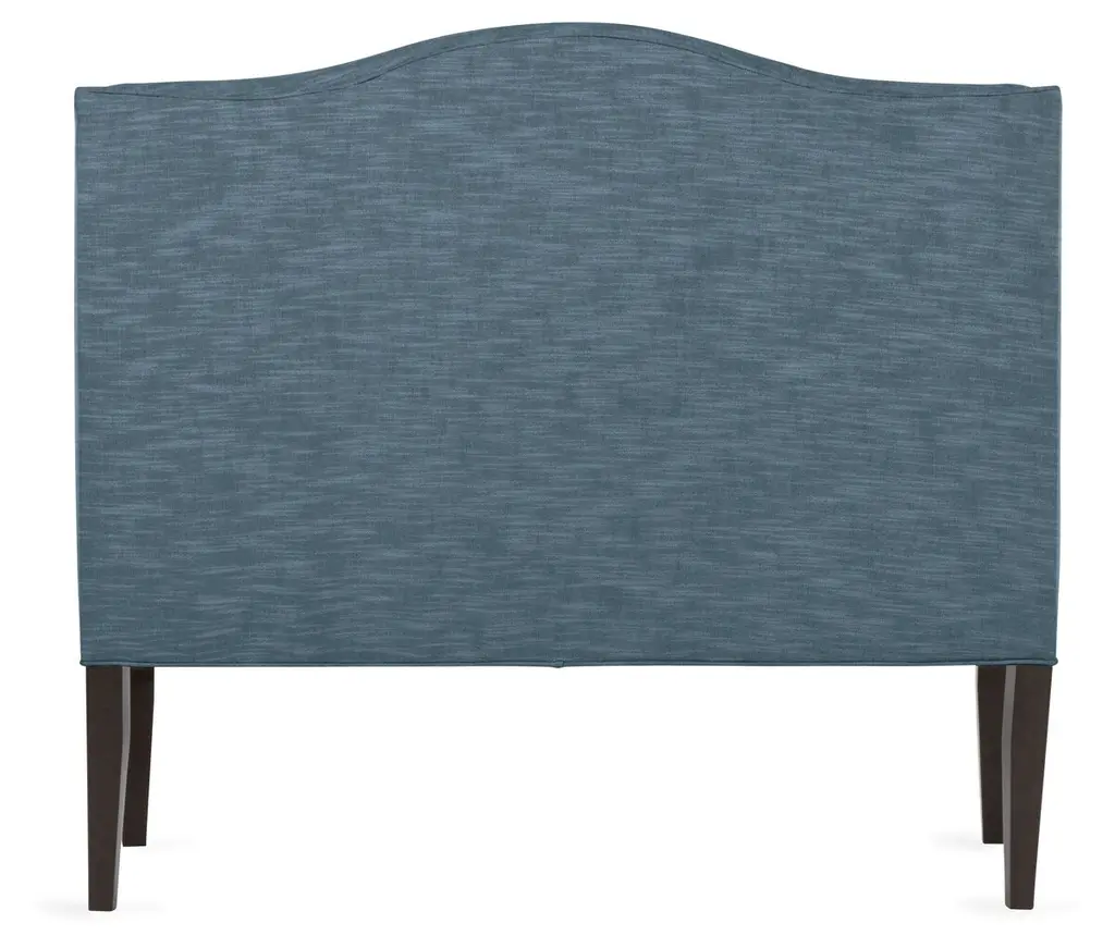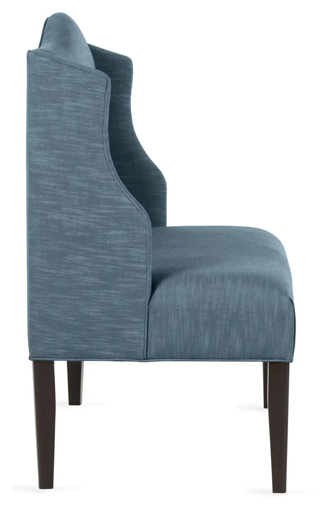 Designed by us and available only at One Kings Lane: A modern take on the classic banquette, this piece features a camelback silhouette upholstered in midnight-blue velvet with winged side panels and exposed, tapered legs. Ideal for a breakfast nook but right at home in the dining room, this piece is filled with foam for a comfortable seat wherever it's placed.One Kings Lane brings you a line of handcrafted, made-to-order furnishings and decor designed by us and available only here. In keeping with our distinctive aesthetic, the pieces range from classic to contemporary and are available in a gorgeous variety of handpicked fabrics, finishes, and hardware.