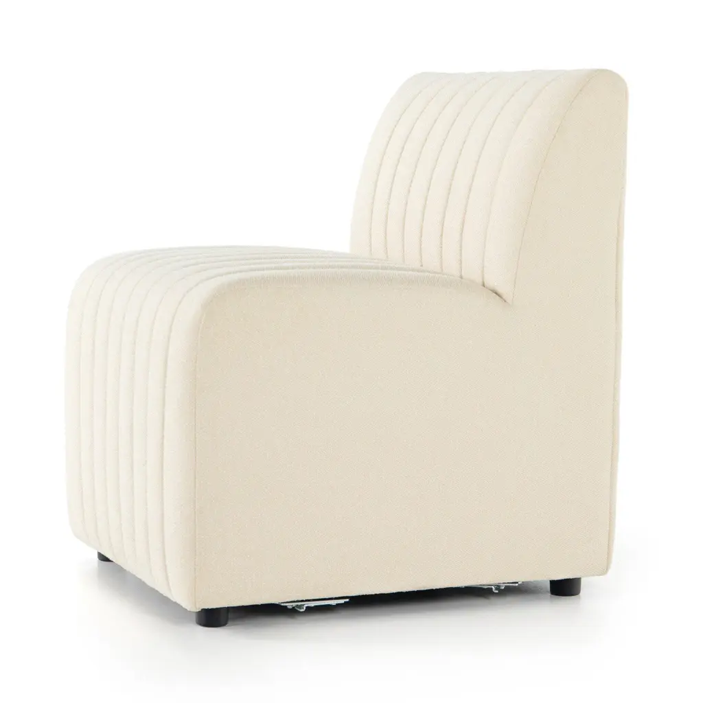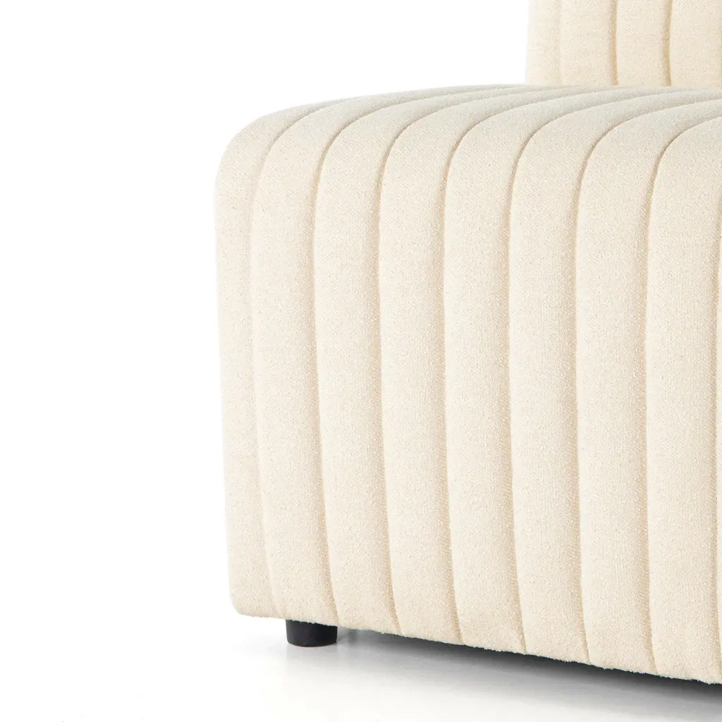 High-performance fabric in a versatile oatmeal hue features dramatic channeling, for trend-forward texture and sumptuous sit.