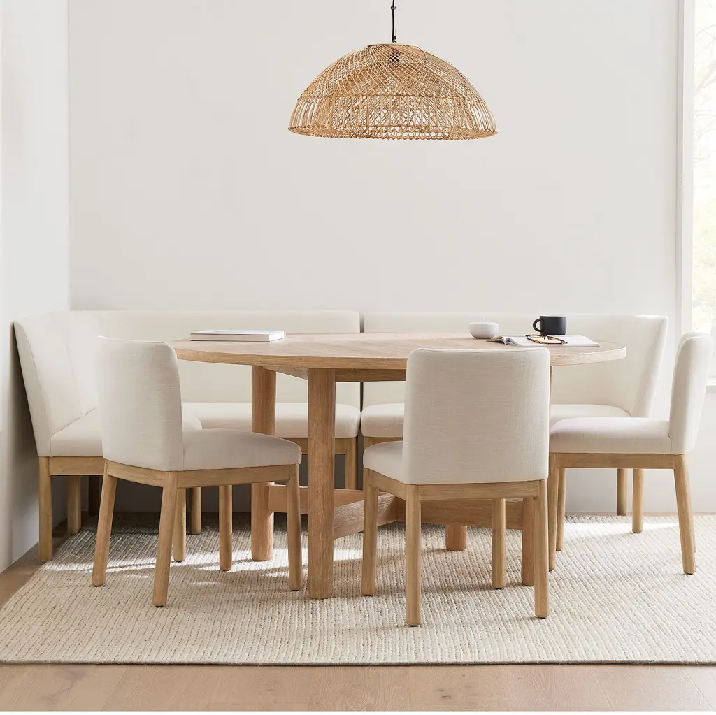 A fresh take on modern farmhouse style. Modular design to fit any dining space or nook. Made of kiln-dried, sustainably sourced wood. Contract Grade for unmatched durability.