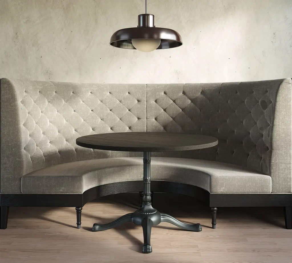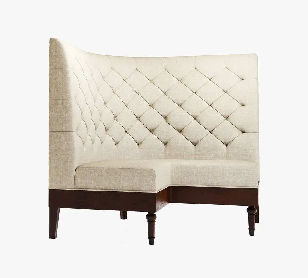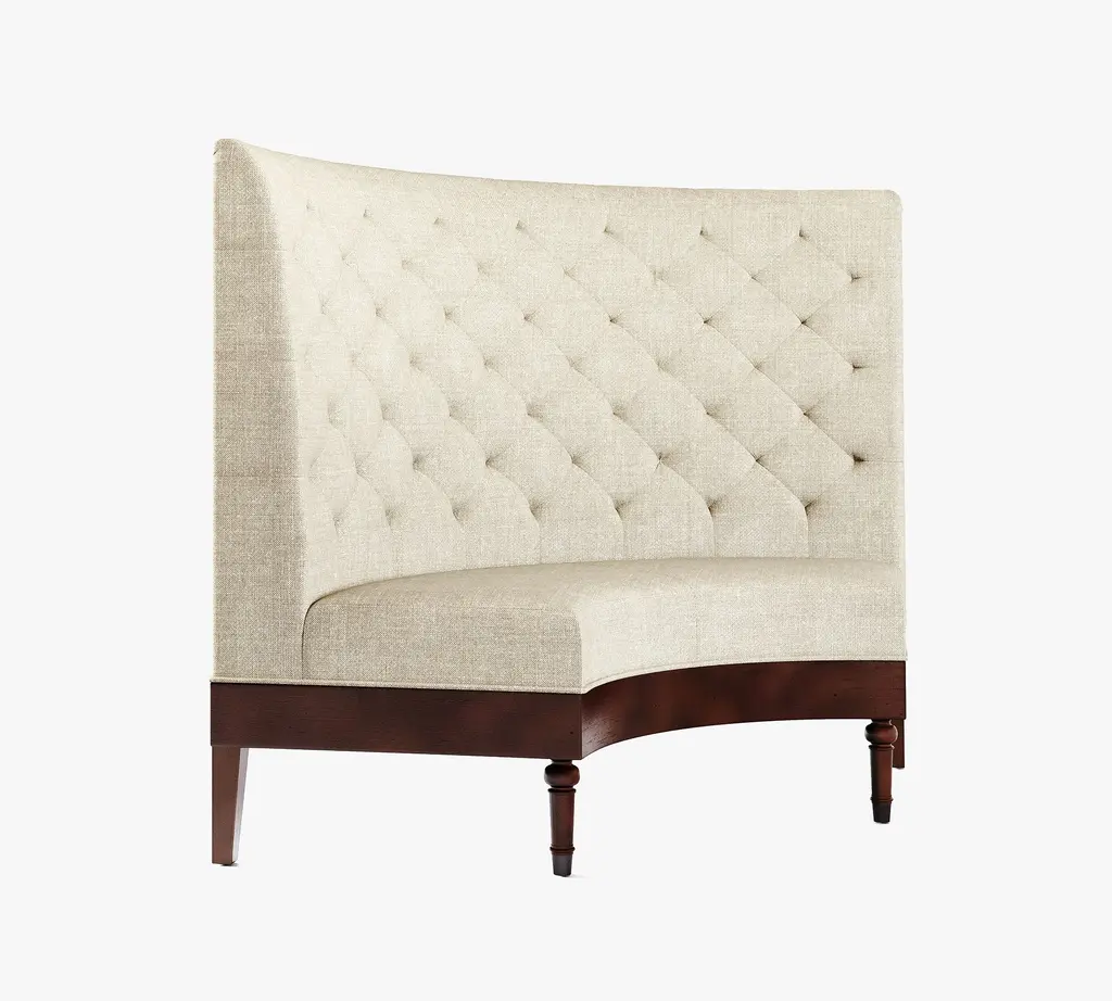 Designed for versatility, our Hayworth banquette has a modular design that easily configures to any space. Combining durability with comfort and style, it's made to order using contract-grade fabrics. We love the dramatic look of its high back, which adds an air of privacy. The tufting and turned legs serve up timeless appeal.