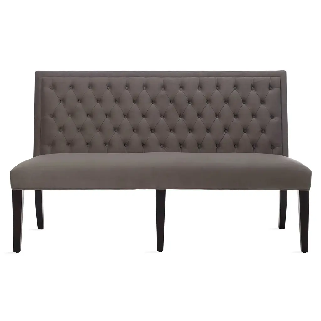The modern banquette -- tufted, tailored, and ready for dinner parties. High-density foam, resilient springs and espresso stained solid-birch legs elevate this seating option for everyday use. Shown in Bella Velvet Otter.Z Gallerie ExclusiveCustomize it! Available in over 15 fabrics, 4 legs finishes, and 4 nailhead finishes as well as the option to have no nailheads. The Maxwell Banquette is not available with a ring pull. Custom Orders: Custom Furniture is manufactured especially for you, which is why we do not accept cancellations, exchanges, or returns.