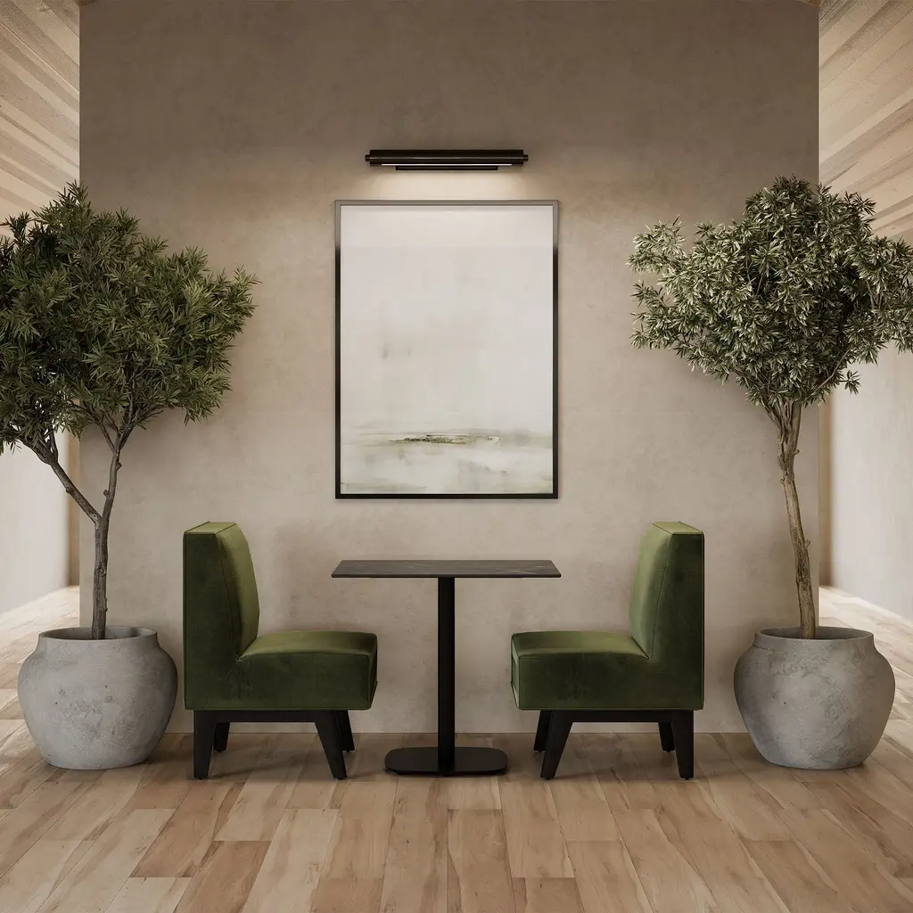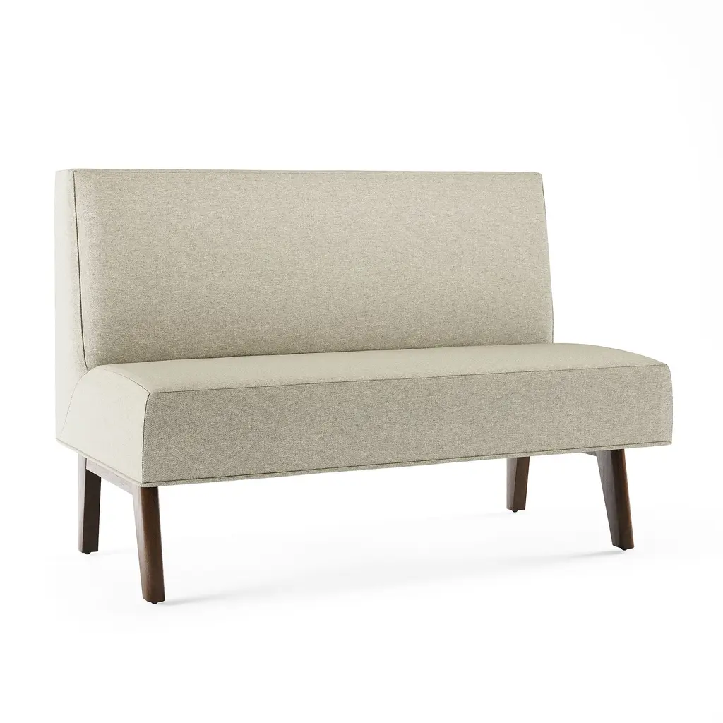 Double, triple, curved and corner units for multiple configurations. Made-to-order fabrics tailor to a range of design aesthetics. Optional integrated power for guest charging. The smooth, clean-lined backrest has classic style.
