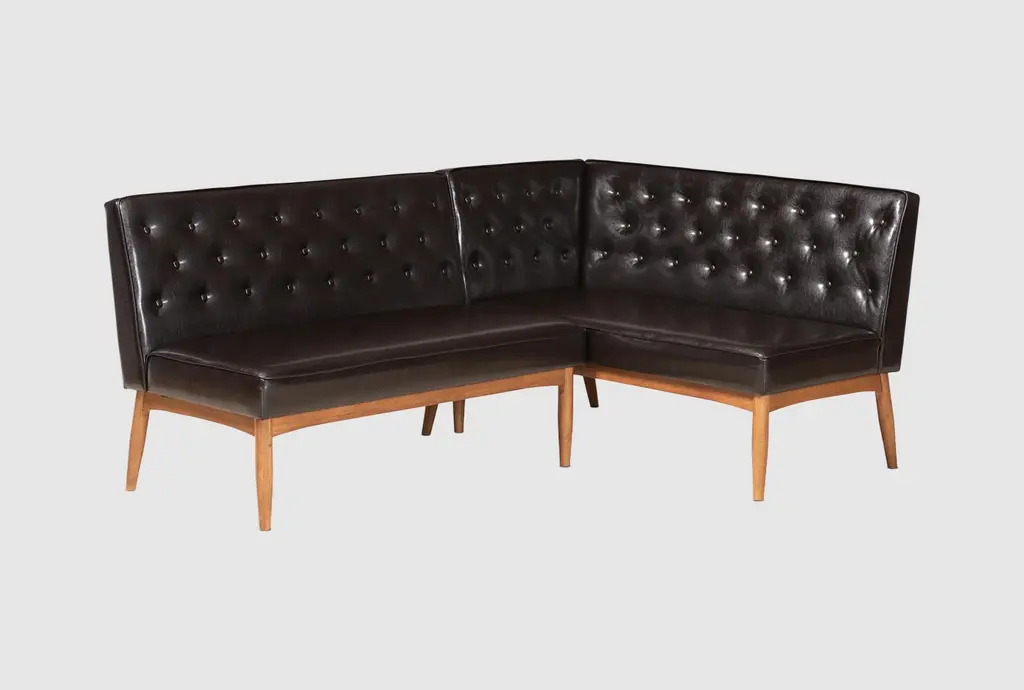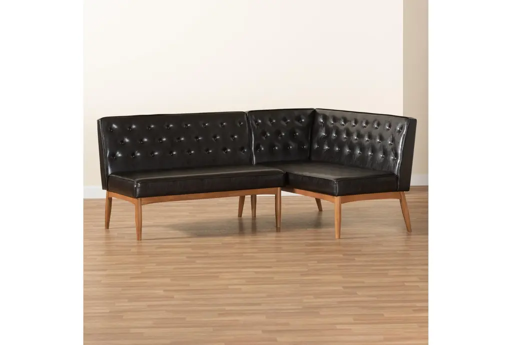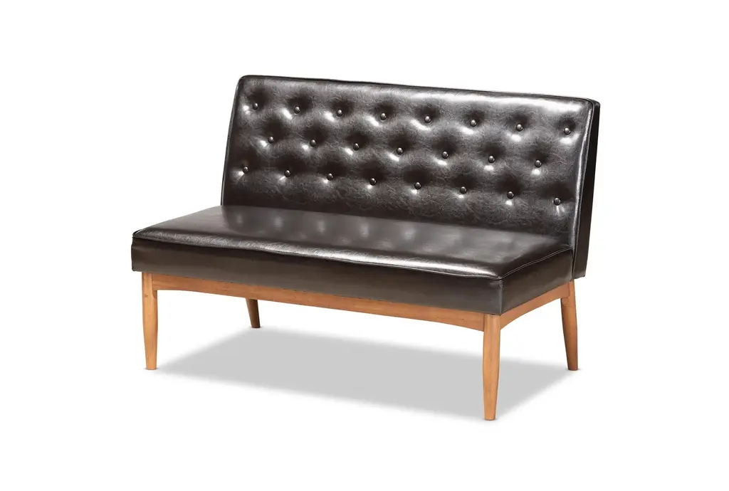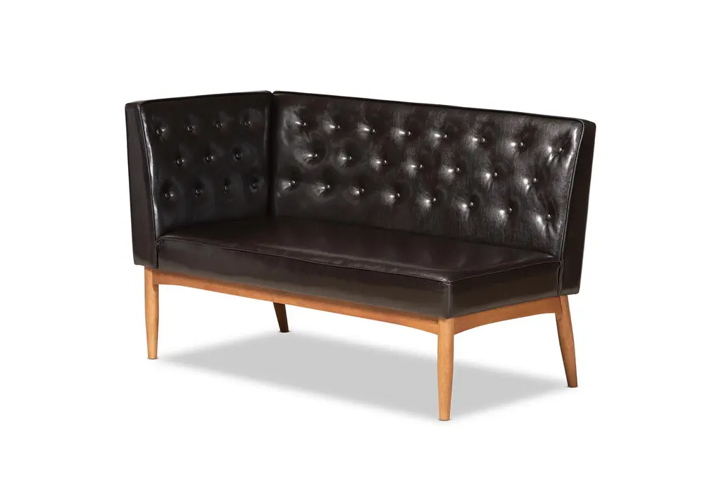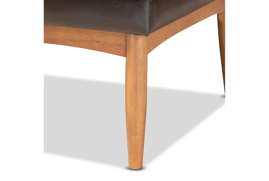 Riordan Mid-Century Modern Dark Brown Faux Leather Upholstered And Walnut Brown Wood 2-Piece Dining Nook Banquette | Tufted