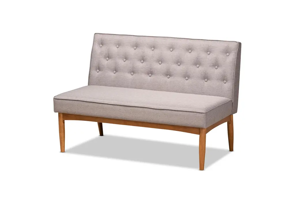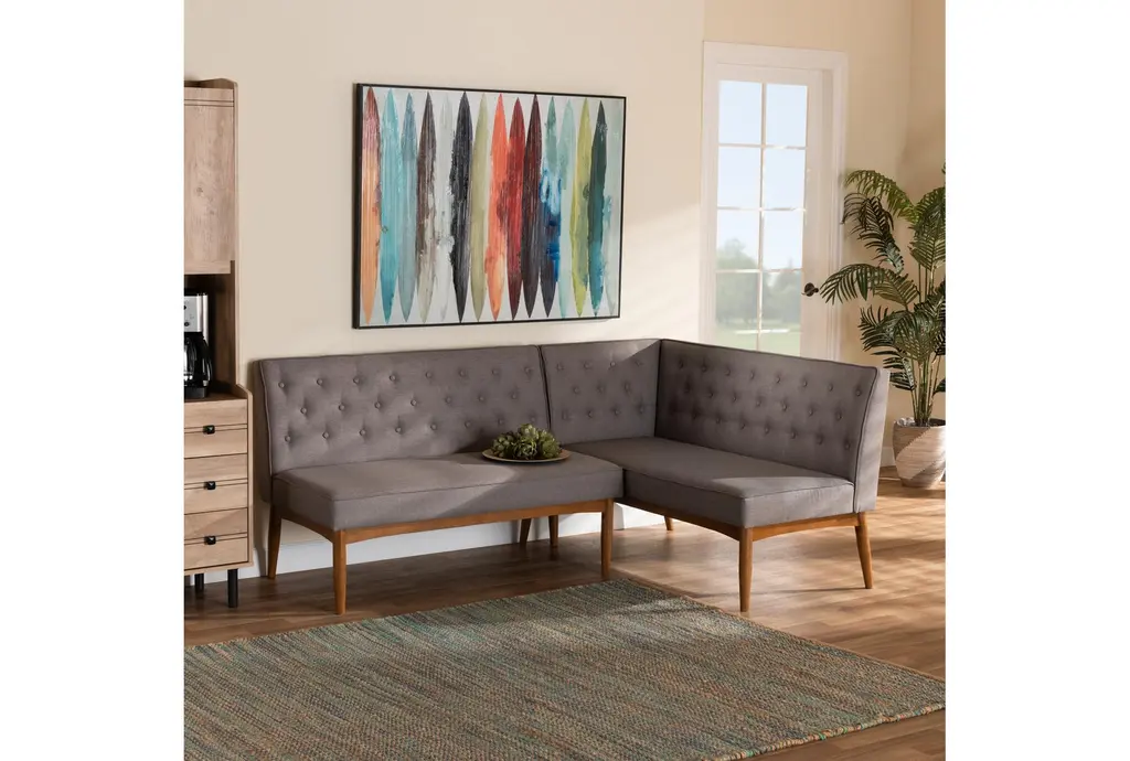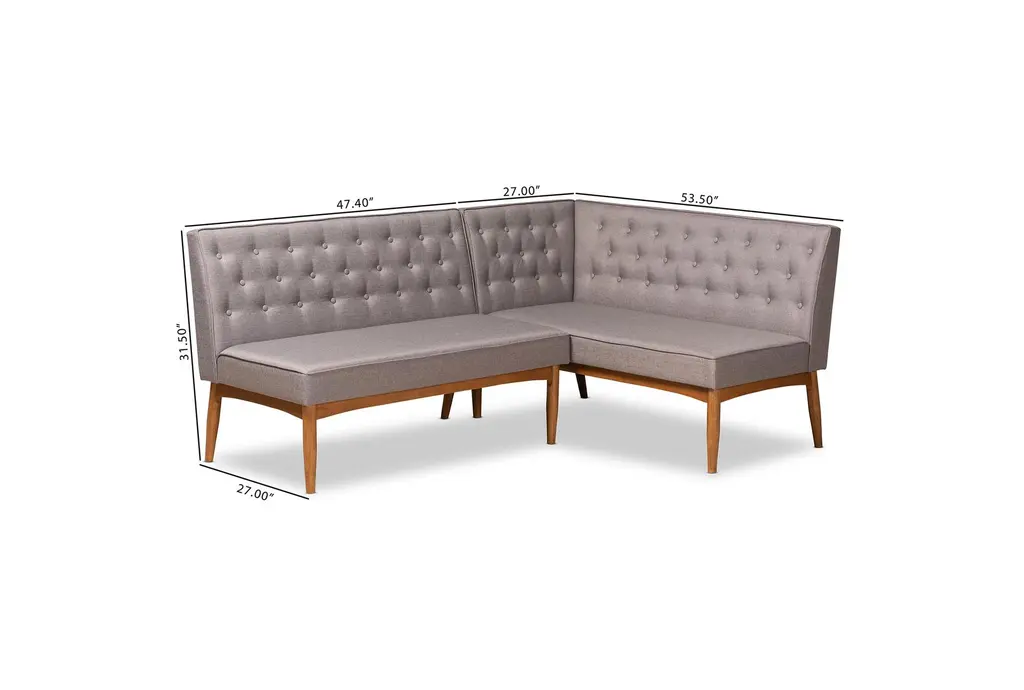 Riordan Mid-Century Modern Grey Fabric Upholstered And Walnut Brown Wood 2-Piece Dining Nook Banquette | Tufted