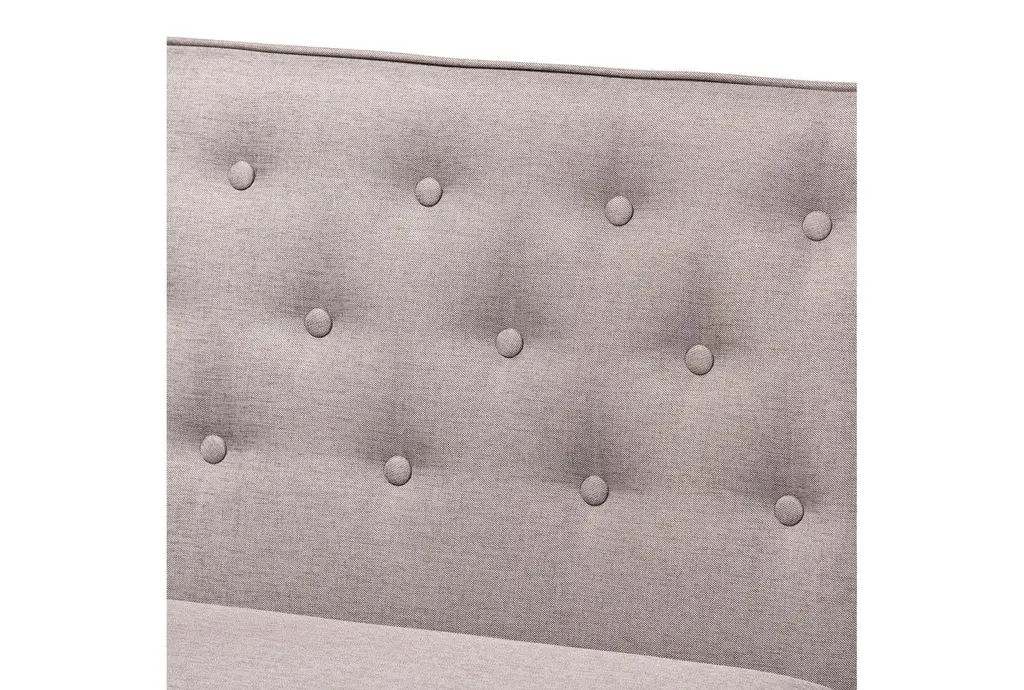The Riordan Mid-Century Modern Grey Fabric Upholstered and Walnut Brown Wood 2-Piece Dining Nook Banquette is a stylish addition to any dining room. This banquette features tufted detailing and a high back, providing both comfort and a touch of sophistication to your space. The grey fabric and walnut brown wood combine to create a modern look that complements a variety of interior styles.