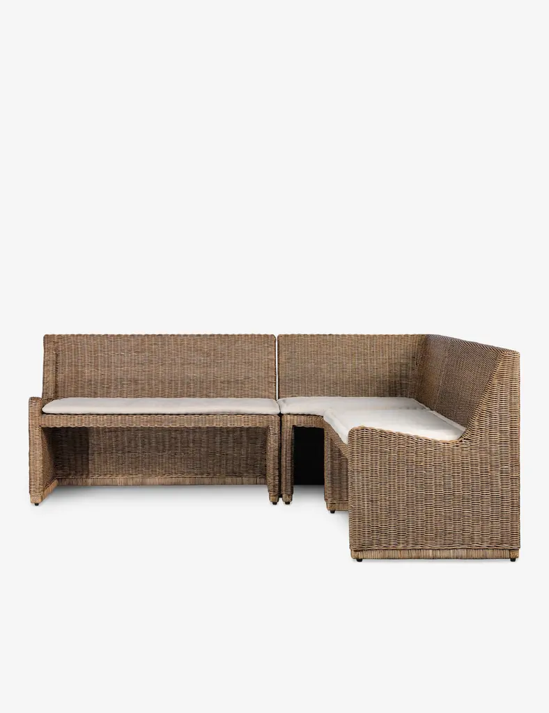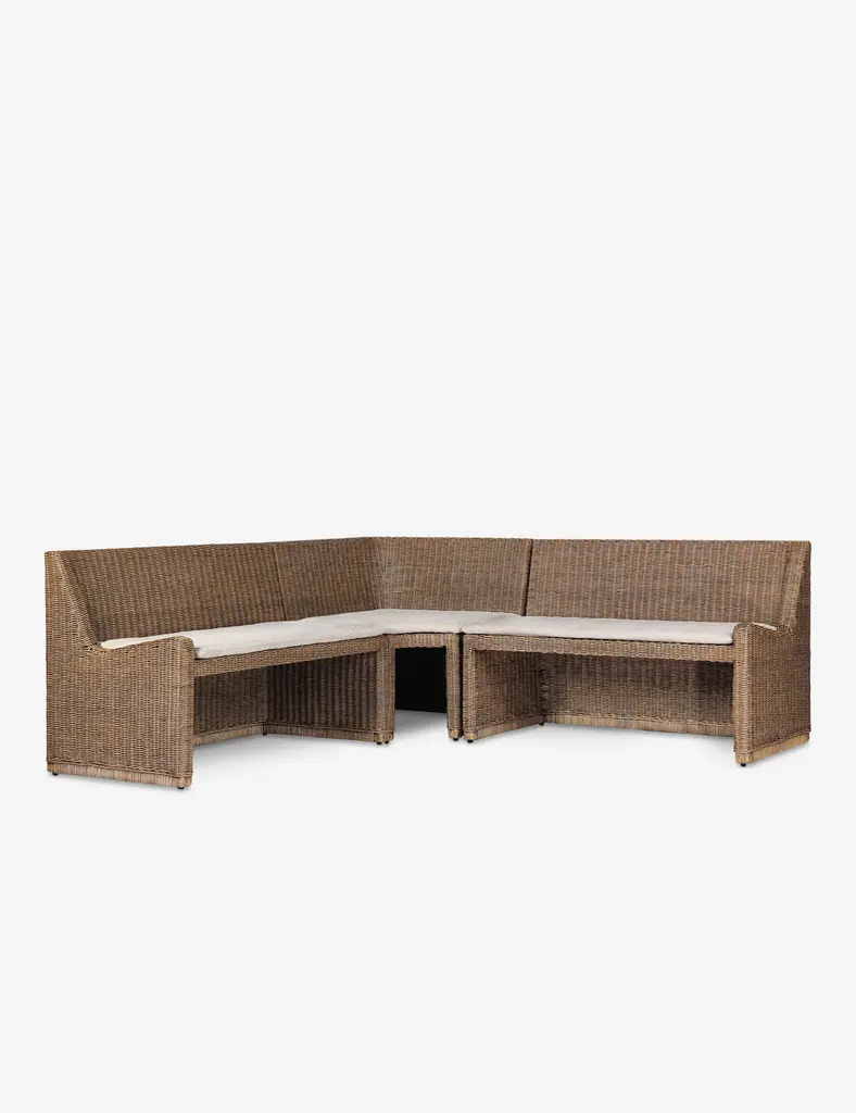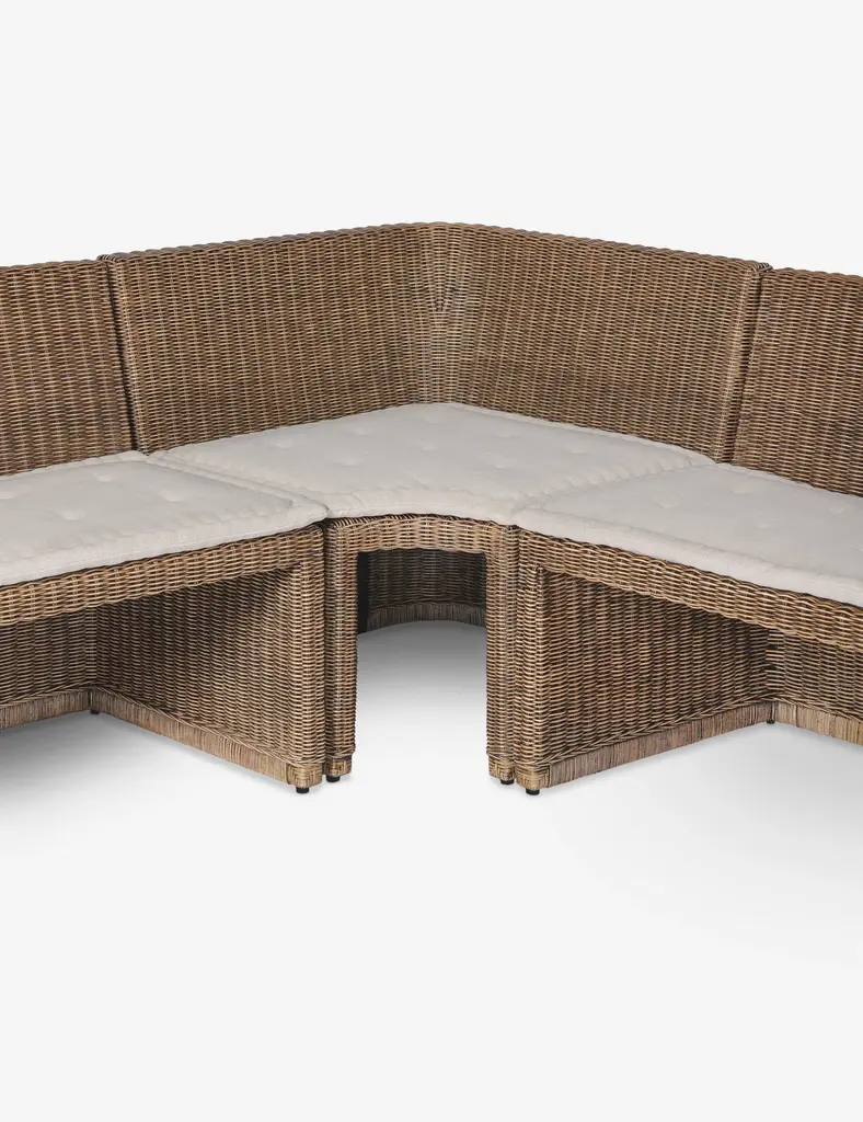 Four Hands brings their exceptional craftsmanship to a timeless collection rooted in Amber Lewis' perennial California style. Add casual flair to a breakfast nook or dining room with this modern dining banquette. Each piece is crafted from rattan that adds refined texture, while slim padded seat cushions add a fresh touch of style and comfort.