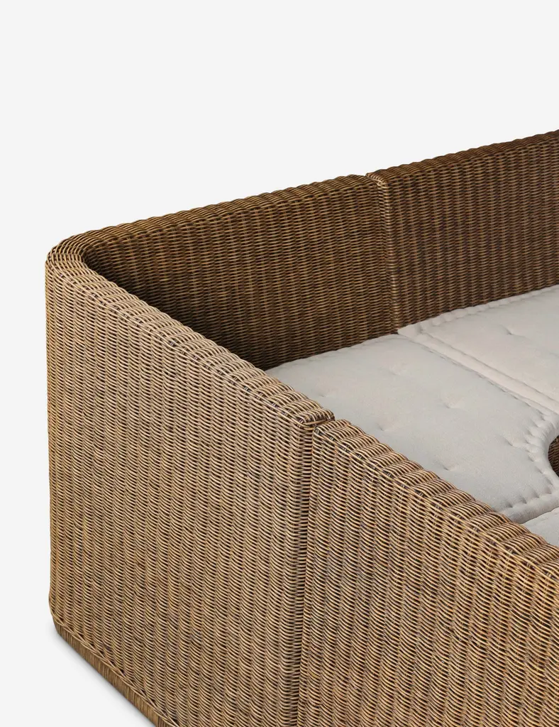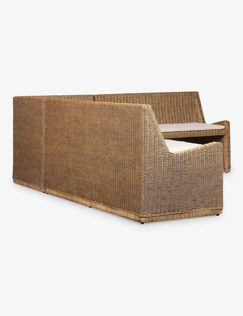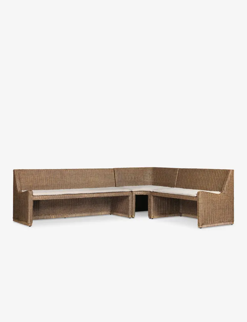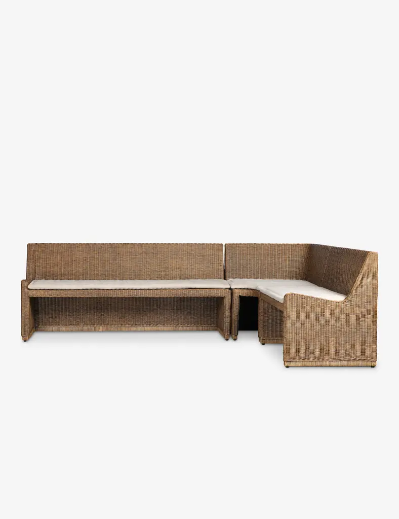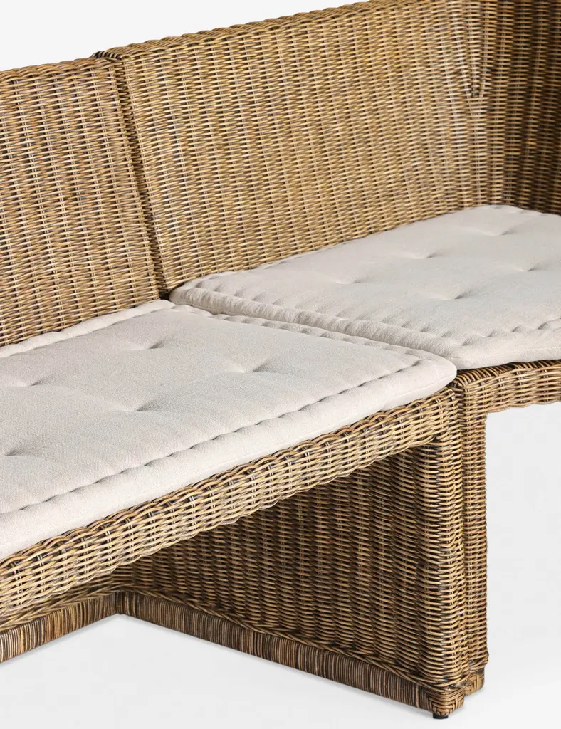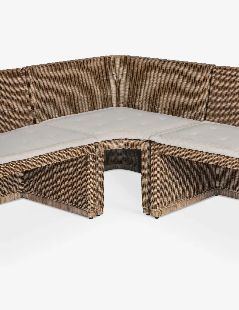 Four Hands brings their exceptional craftsmanship to a timeless collection rooted in Amber Lewis' perennial California style. Add casual warmth to a breakfast nook or dining room with this modern dining banquette. Each piece is crafted from rattan for timeless texture, while slim padded seat cushions add a touch of style and comfort.