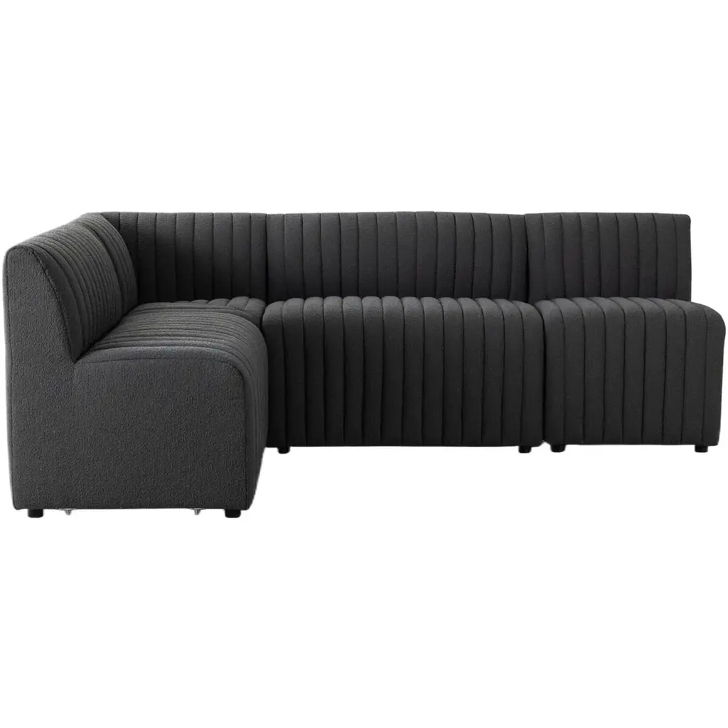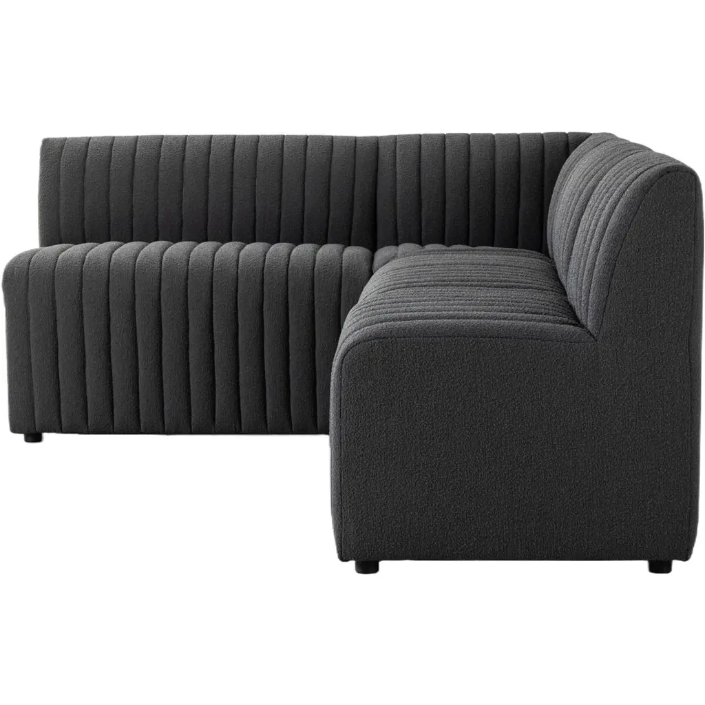 The Vivian Dining Banquette, L-Shape, is a sophisticated addition to any dining space, showcasing dramatic channeling that enhances its elegant design. Inspired by classic menswear patterns, this banquette offers a sumptuous seating experience. Its versatile design allows for pairing with matching pieces, providing flexible modularity to suit various room configurations. Crafted with high-performance fabric, it ensures both style and comfort, making it a timeless choice for modern interiors.