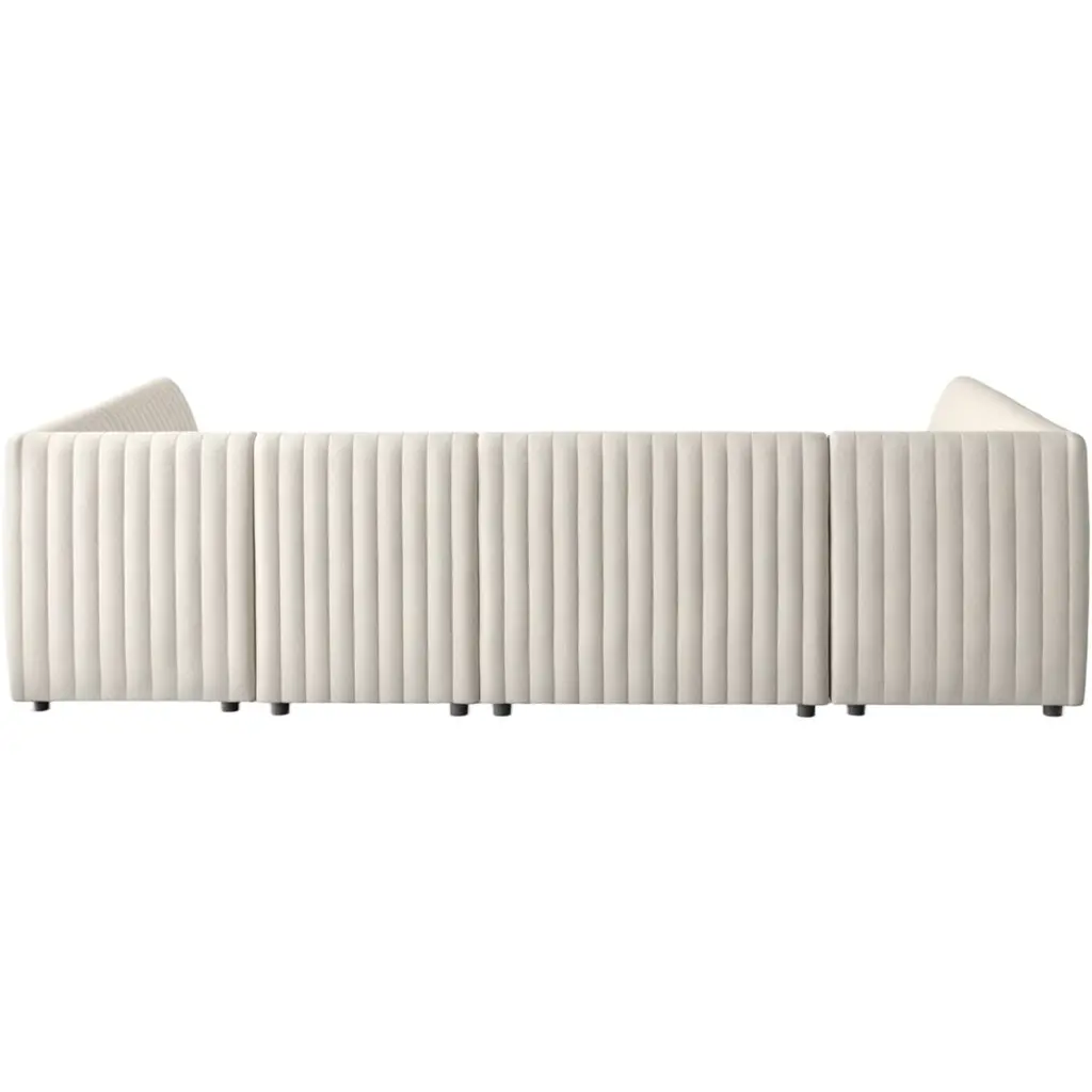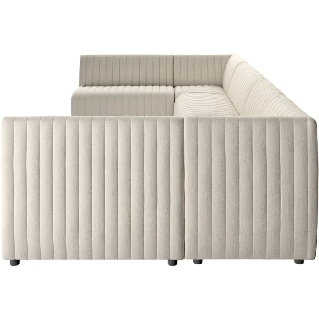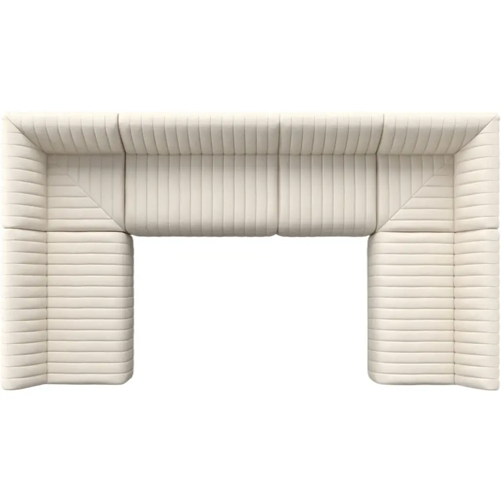 The Vivian Dining Banquette, U Shape, is a masterpiece of design and functionality. Its dramatic channeling and tailored fabric, inspired by classic patterns, create a sophisticated and inviting atmosphere. This banquette offers the flexibility of modularity, allowing you to pair it with matching pieces to suit your space and style. Whether you're hosting a dinner party or enjoying a quiet meal, the Vivian Dining Banquette provides a sumptuous and comfortable seating experience.