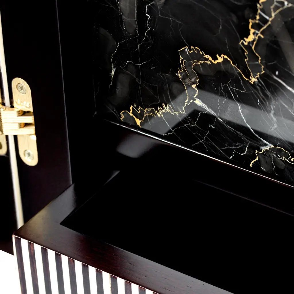 21st Century Majord’home Bar Cabinet, Maple And Ebony Inlays, Made In Italy