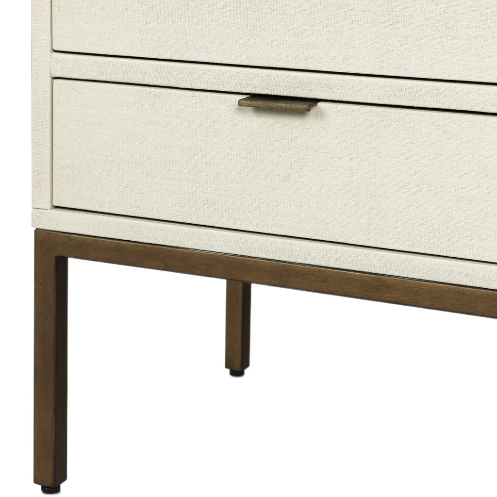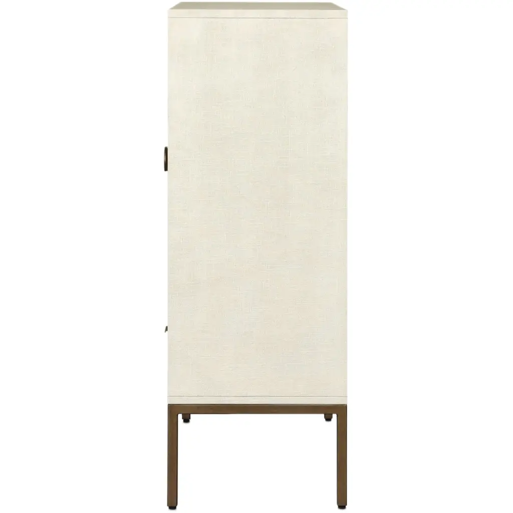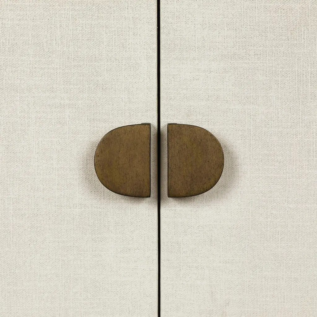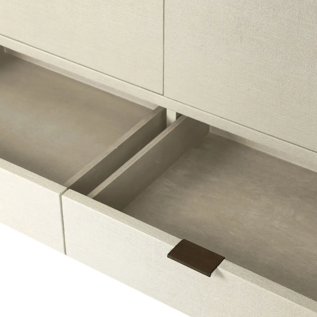 The Aeris Bar Cabinet offers a sophisticated blend of style and functionality, perfect for any modern living space. Its sleek design features painted linen paired with an airy iron base, creating a clean and fresh aesthetic. The unique half-moon iron detailing adds a touch of elegance, while two lower drawers provide ample storage for your bar essentials. This cabinet is a stunning addition to any home, combining practicality with a chic, contemporary look.