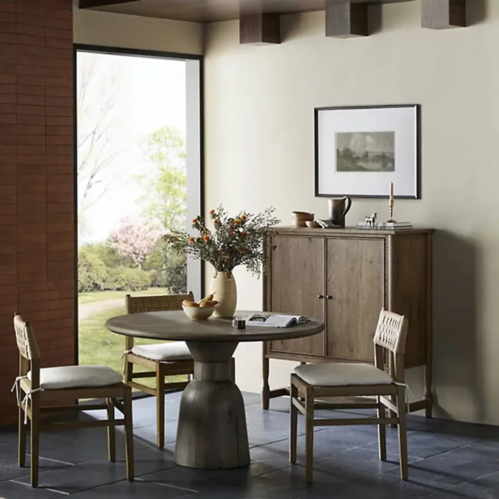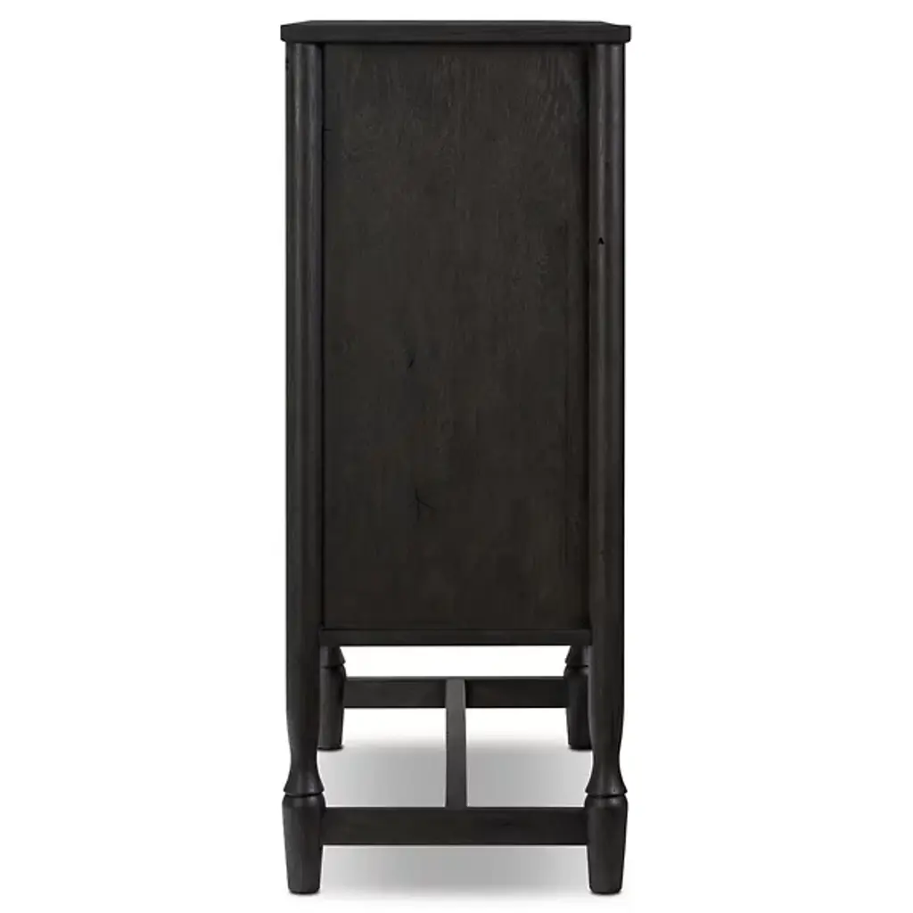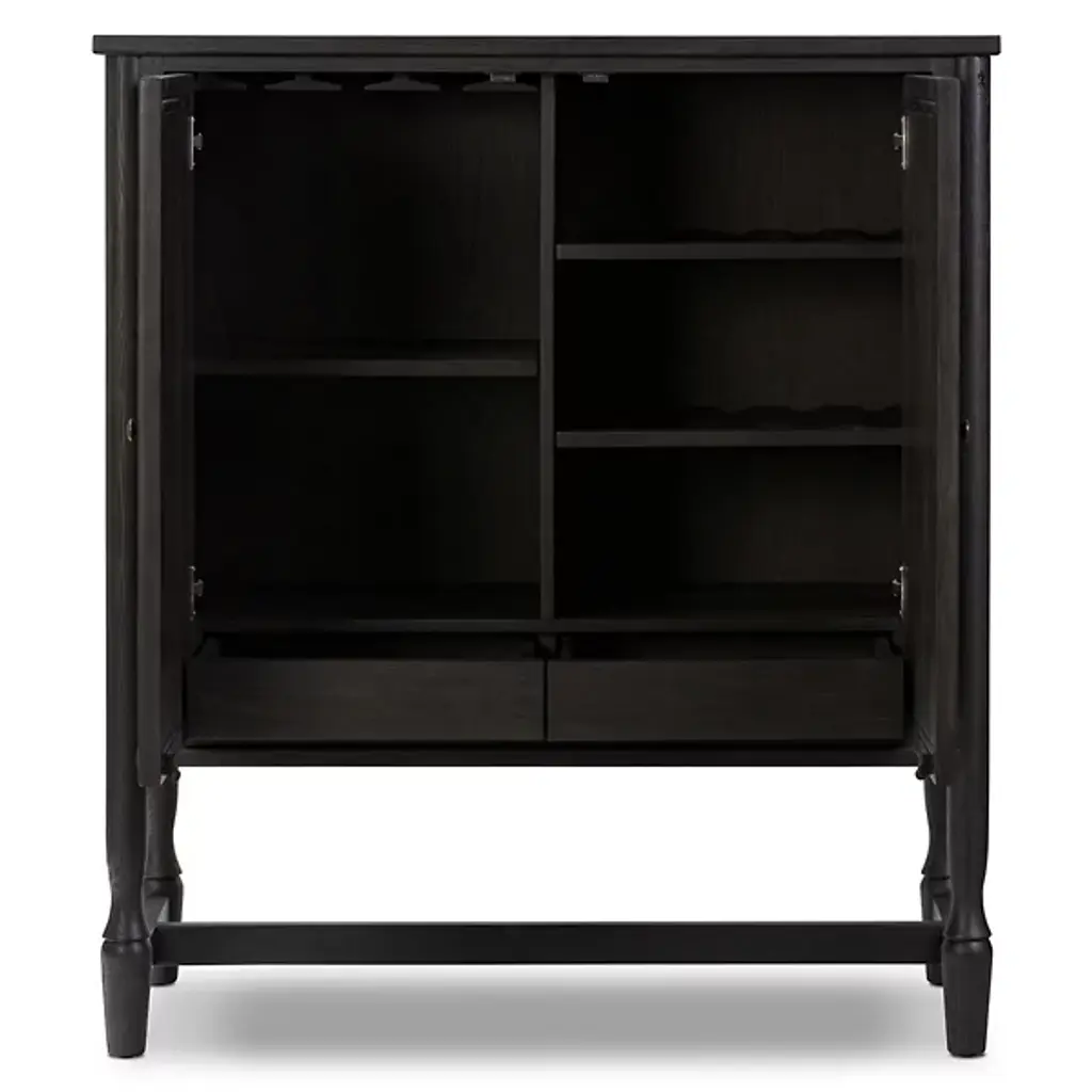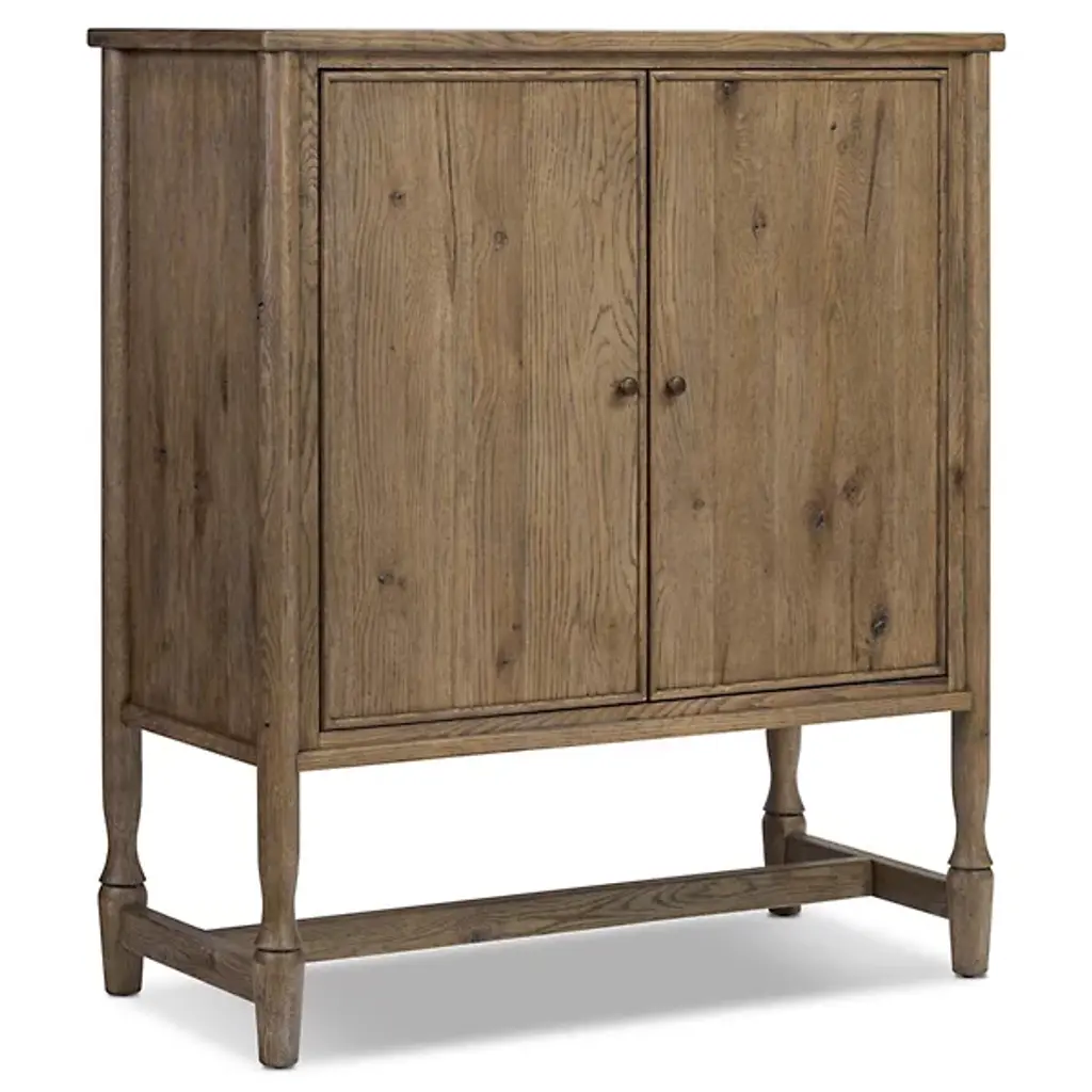The Amber Lewis x Four Hands Bari Bar Cabinet from Four Hands is a storage solution that elegantly combines rustic modem and contemporary styles. Your cabinet is meticulously crafted from solid oak and thick oak veneer. This durable fixture reveals shelves that are removable and adjustable for your convenience. Hinged doors keep your organized accessories concealed. This cabinet boasts pulls that offer quick access to your possessions. Bari Bar has a shelf capacity of 40 pounds.
