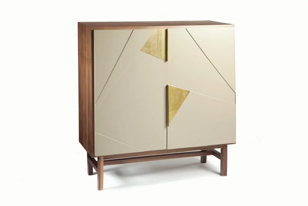 Jazz bar cabinet is a high quality product by Mambo Unlimited Ideas, crafted in polished or matte lacquered wood structure and feet, brass applications and lacquered doors. It features three dimensional designs on its doors, elegant oxidized brass handles and discreet wood feet. This bar cabinet is divided in two doors, with shelves inside. Made to Order. Open since 1997 and based in Lisbon, Portugal, a country with a long crafts tradition, Mambo Unlimited Ideas' design team researches for innovation and creativity developments around the world while embracing the crafts heritage, creating contemporary pieces combining traditional Portuguese materials and handmade techniques producing original, high quality products.Mambo Unlimited Ideas is dedicated to furniture and upholstery. Its collection offers a comprehensive customizable furniture and upholstery range dedicated to the contract - hospitality, restoration and workspaces - and residential segments.