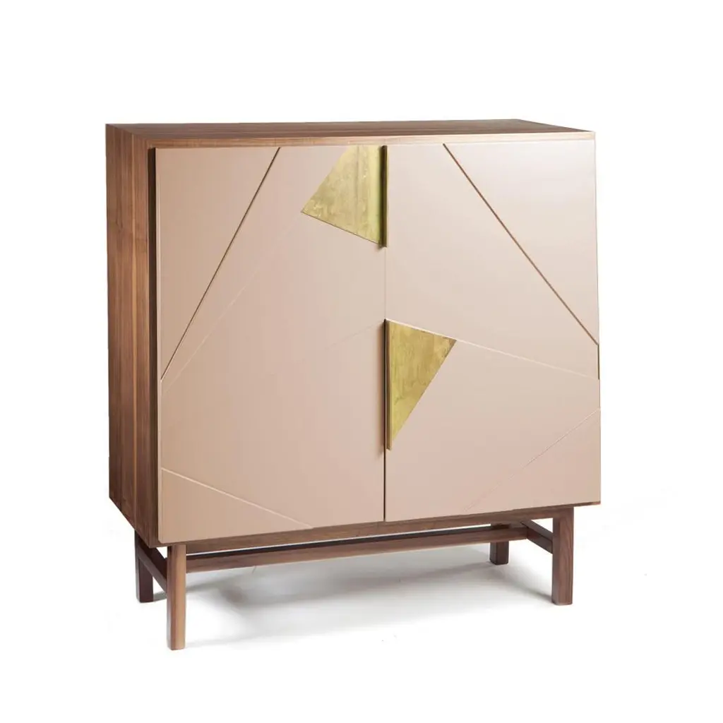 Art Deco Inspired Bar Cabinet Jazz In Lacquered Wood And Polished Brass