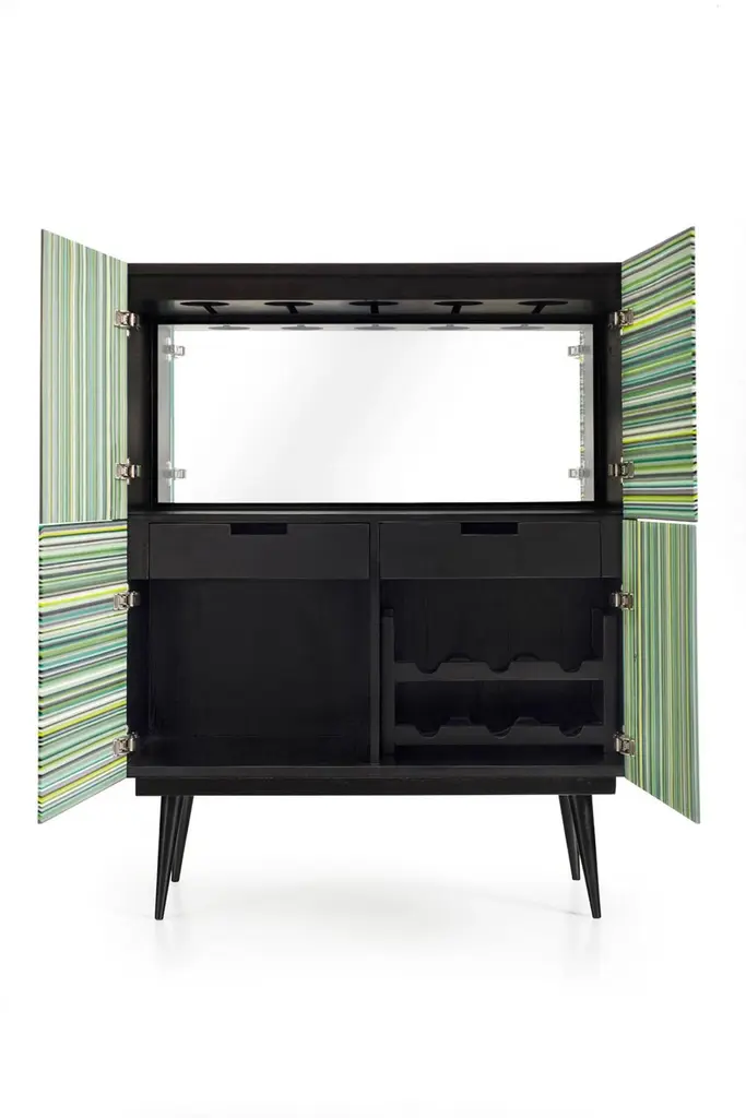 Bar designed by Orfeo Quagliata in collaboration with Taracea Furniture. An object of fused glass created with the exclusive barcode technique. The Bar's simple and retro design mixed with designer's exceptional glass expertise put together a cutting edge interiors proposal.