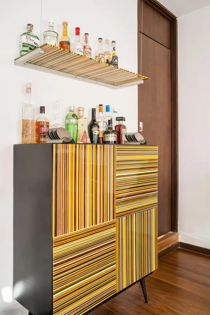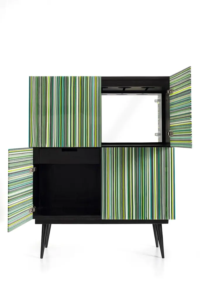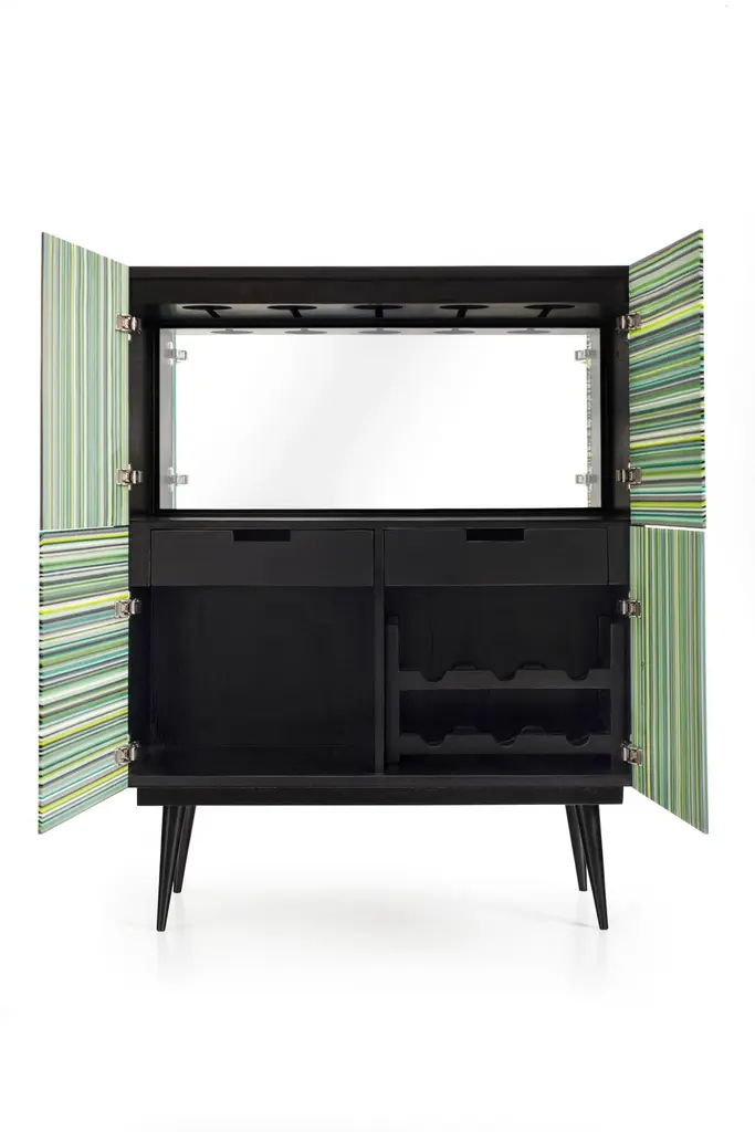 Bar designed by Orfeo Quagliata in collaboration with Taracea Furniture. An object of fused glass created with the exclusive barcode technique. The Bar's simple and retro design mixed with designer's exceptional glass expertise put together a cutting edge interiors proposal.