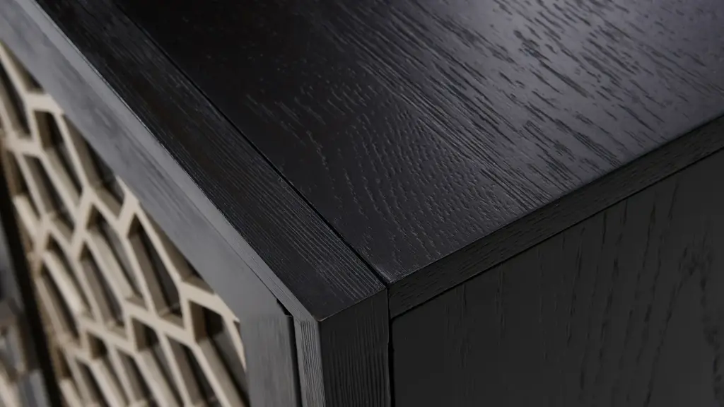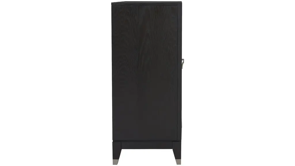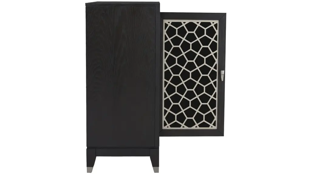 A bold fusion of retro charm and modern edge, the Beatrix bar cabinet is a striking statement piece for sophisticated entertaining. Finished in a low-sheen espresso stain, it features textured geometric paneling with burnished brass accents that exude contemporary glamour. Inside, shelving and built-in bottle storage offer seamless functionality. Whether tucked into a lounge or showcased in an open-concept space, the Beatrix redefines the art of the cocktail hour.