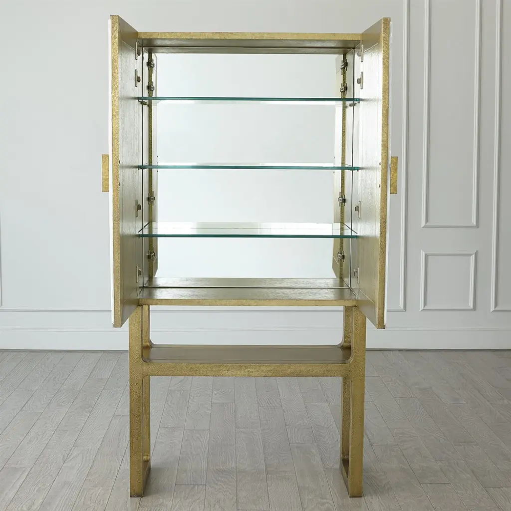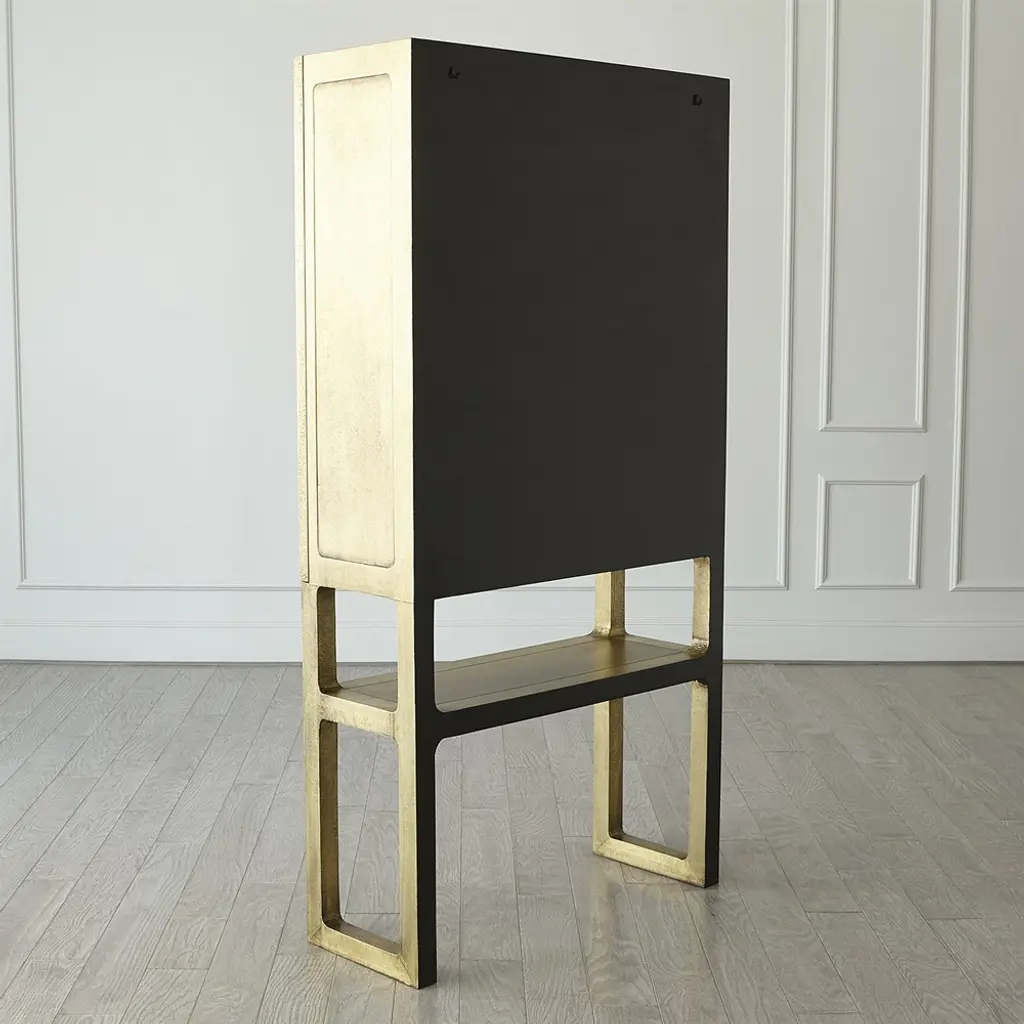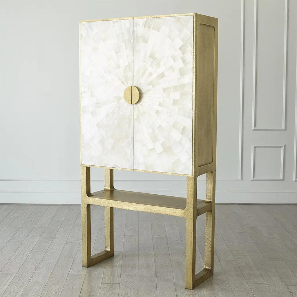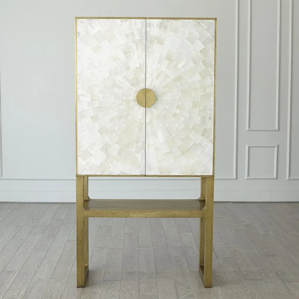 Briar Modern Classic Selenite Brass Wood Bar Cabinet