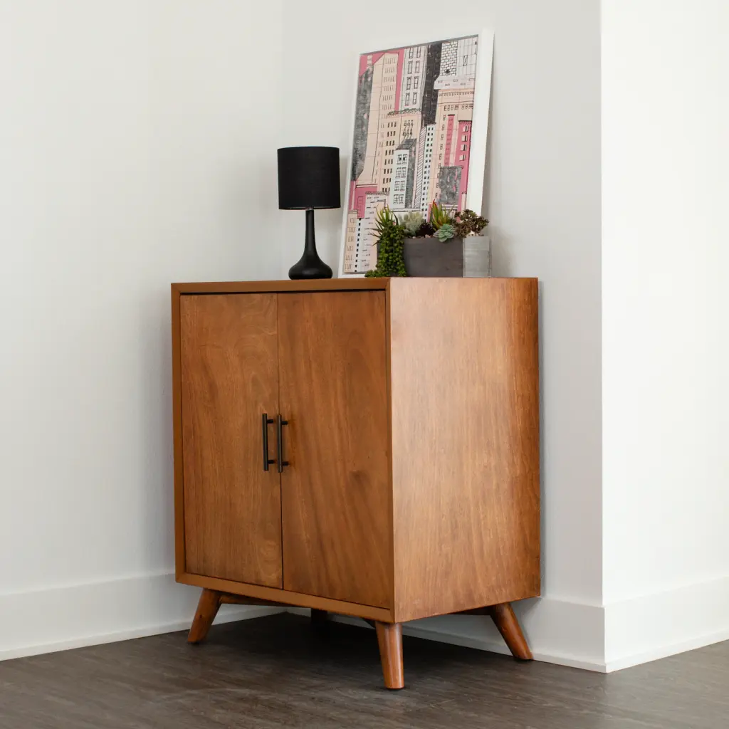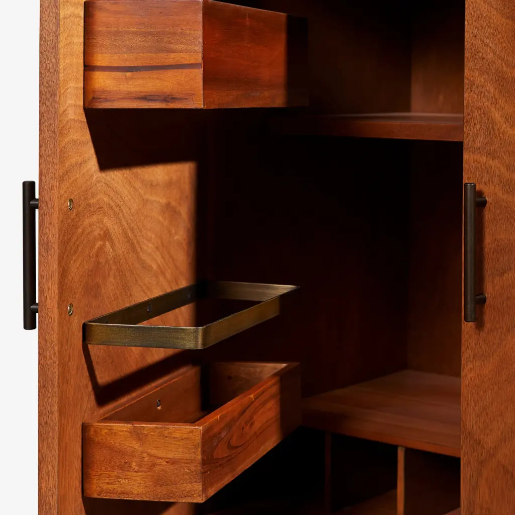 After a long day, there’s nothing finer than a drink the right way—your way. And the acorn-finished Cheney Bar Cabinet will help you prep it. The Cheney has seven horizontal bottle slots for those top-shelf reds and four door-mounted racks for glassware and additional bottles. Congrats on finding a drinking buddy who can keep up with you.