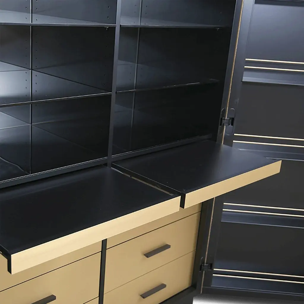 Contemporary Black Wine Bar Cabinet In Brushed Brass, Gold