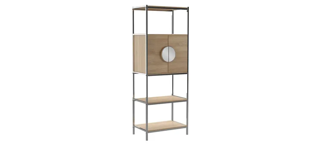 Keep your favorite drinks close at hand with this Davenport Bar Cabinet. Multiple shelves and a pull-out serving tray organize bottles, glasses and dcor, while double doors tuck away necessities for a clean, clutter-free space. Mirrored hardware brings a contemporary feel, adding style and dimension to your dining area or kitchen.