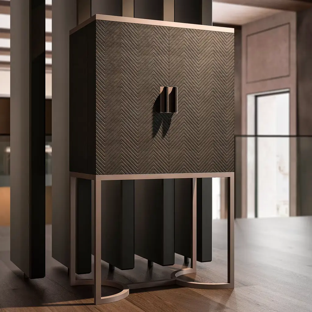 The Dragonfly Bar Cabinet is elegant and stylish in design and features unique velvet lacquered doors with an engraved design. Perfect for storing your drinks of choice and exclusive glassware, the cabinet sits on a uniquely formed metal base for added elegance.